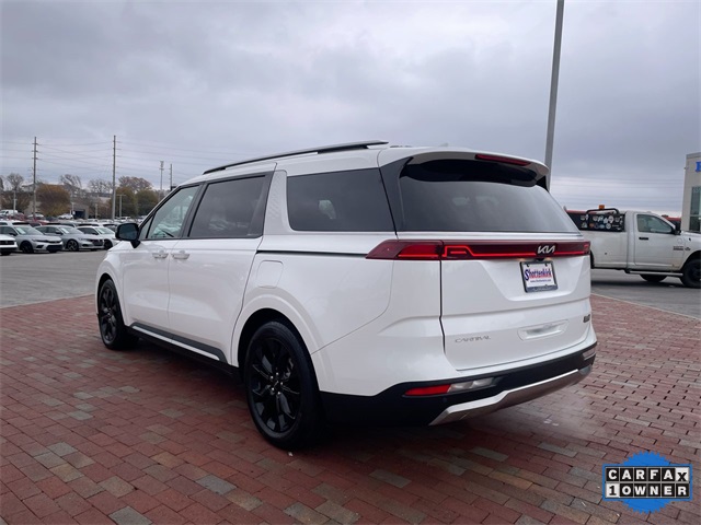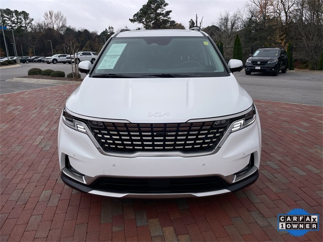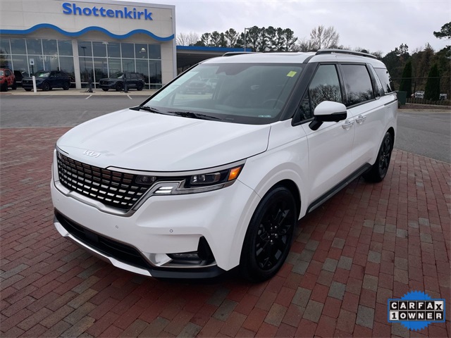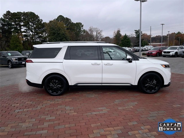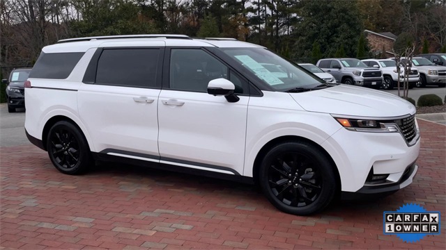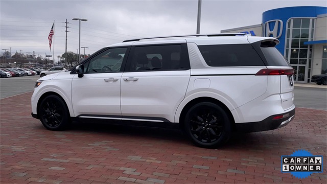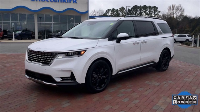 CARFAX One-Owner. 2023 Kia Carnival SX Prestige SX Prestige Snow White Pearl 4D Passenger Van V6 8-Speed Automatic FWD This vehicle comes well equipped with SX Prestige Seat Package (Heated/Ventilated 2nd Row Power VIP Lounge Seats), 12 Speakers, 3.51 Axle Ratio, 3rd row seats: split-bench, 4-Wheel Disc Brakes, ABS brakes, Air Conditioning, Alloy wheels, AM/FM radio: SiriusXM, Apple CarPlay & Android Auto, Auto High-beam Headlights, Auto-dimming Rear-View mirror, Automatic temperature control, Brake assist, Bumpers: body-color, Compass, Delay-off headlights, Driver door bin, Driver vanity mirror, Driver's Seat Integrated Memory System, Dual front impact airbags, Dual front side impact airbags, Electronic Stability Control, Emergency communication system, Exterior Parking Camera Rear, Four wheel independent suspension, Front anti-roll bar, Front Bucket Seats, Front Center Armrest, Front dual zone A/C, Front fog lights, Front reading lights, Fully automatic headlights, Garage door transmitter: HomeLink, Heated & Ventilated Front Bucket Seats, Heated door mirrors, Heated front seats, Heated steering wheel, Illuminated entry, Knee airbag, Leather Seat Trim, Leather Shift Knob, Leather steering wheel, Low tire pressure warning, Luxury Carpeted Floor Mats, Memory seat, Navigation System, Occupant sensing airbag, Outside temperature display, Overhead airbag, Overhead console, Panic alarm, Passenger door bin, Passenger vanity mirror, Power 2nd-Row Moonroof, Power door mirrors, Power driver seat, Power Liftgate, Power moonroof, Power passenger seat, Power steering, Power windows, Radio: AM/FM/HD Audio System, Rear air conditioning, Rear anti-roll bar, Rear reading lights, Rear window defroster, Rear window wiper, Reclining 3rd row seat, Remote keyless entry, Roof rack: rails only, Security system, Speed control, Speed-sensing steering, Split folding rear seat, Spoiler, Steering wheel mounted audio controls, Tachometer, Telescoping steering wheel, Tilt steering wheel, Traction control, Trip computer, Turn signal indicator mirrors, Variably intermittent wipers, Ventilated front seats, and Wheels: 7.5J x 19" Black Painted Alloy.
