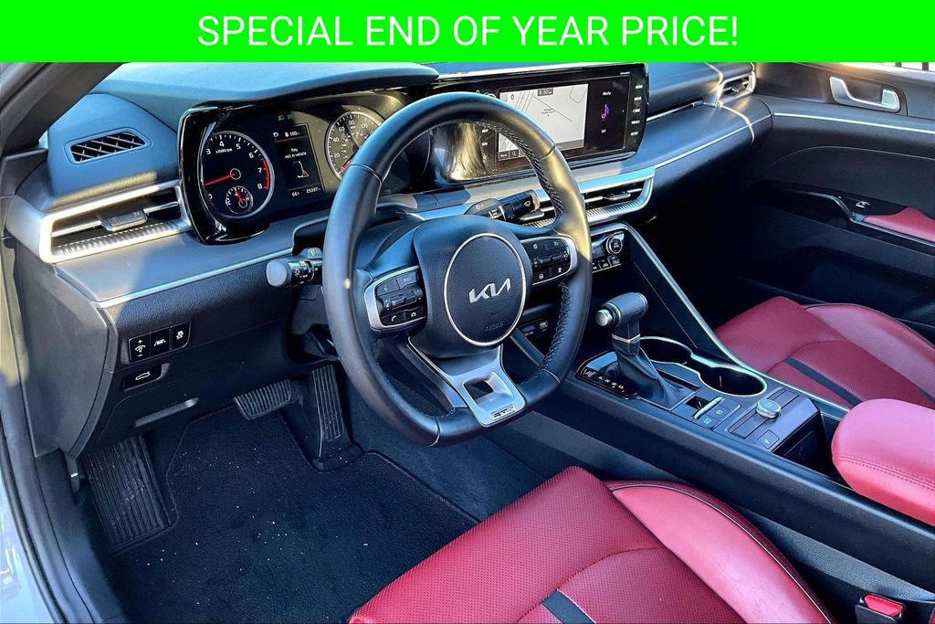 Apple CarPlay, Android Auto, Adaptive Cruise Control, Back Up Camera, Navigation, Power Drivers Seat, K5 GT-Line, 1.6L I4 DGI Turbocharged DOHC 16V LEV3-ULEV70 180hp, 8-Speed Automatic, FWD, Wolf Gray, Black Cloth, AM/FM radio: SiriusXM, Apple CarPlay & Android Auto, Automatic temperature control, Cloth/SynTex Seat Trim, Forward Collision Avoidance-Assist, Front Bucket Seats, Front dual zone A/C, Front fog lights, GT-Line Premium Package, GT-Line Red Interior Package, Highway Driving Assist, LED Projection Headlamps, Navigation System, Power door mirrors, Power driver seat, Radio: AM/FM/MP3 Audio System, Remote keyless entry, Smart Cruise Control w/Stop & Go, Spoiler, Telescoping steering wheel, Tilt steering wheel, Turn signal indicator mirrors, Wheels: 18" Gloss Black Machined Finish Alloy.