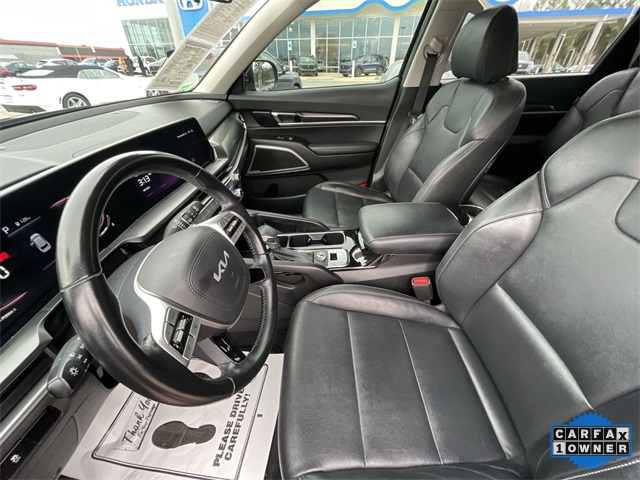 CARFAX One-Owner. 2023 Kia Telluride LX LX Ebony Black 4D Sport Utility 3.8L V6 DGI DOHC Dual CVVT 8-Speed Automatic FWD This vehicle comes well equipped with 3.510 Axle Ratio, 3rd row seats: split-bench, 4-Wheel Disc Brakes, 6 Speakers, ABS brakes, Air Conditioning, Alloy wheels, AM/FM radio: SiriusXM, Apple CarPlay & Android Auto, Auto High-beam Headlights, Automatic temperature control, Brake assist, Bumpers: body-color, Carpet Floor Mats, Delay-off headlights, Driver door bin, Driver vanity mirror, Dual front impact airbags, Dual front side impact airbags, Electronic Stability Control, Emergency communication system: 911 Connect, Exterior Parking Camera Rear, Four wheel independent suspension, Front anti-roll bar, Front Bucket Seats, Front Center Armrest, Front dual zone A/C, Front reading lights, Fully automatic headlights, Heated door mirrors, Hybrid Cargo Net, Illuminated entry, Knee airbag, Leather steering wheel, Low tire pressure warning, Navigation System, Occupant sensing airbag, Outside temperature display, Overhead airbag, Overhead console, Panic alarm, Passenger door bin, Passenger vanity mirror, Power door mirrors, Power steering, Power windows, Radio data system, Radio: AM/FM Display Audio System, Rear air conditioning, Rear anti-roll bar, Rear audio controls, Rear reading lights, Rear seat center armrest, Rear side impact airbag, Rear window defroster, Rear window wiper, Reclining 3rd row seat, Remote keyless entry, Security system, Smart Key w/ Push Button and Remote Start, Speed control, Speed-sensing steering, Split folding rear seat, Spoiler, Steering wheel mounted audio controls, SynTex Synthetic Leather Seat Trim, Tachometer, Telescoping steering wheel, Tilt steering wheel, Traction control, Trip computer, Turn signal indicator mirrors, Variably intermittent wipers, and Wheels: 18" x 7.5" Silver Finish Alloy.