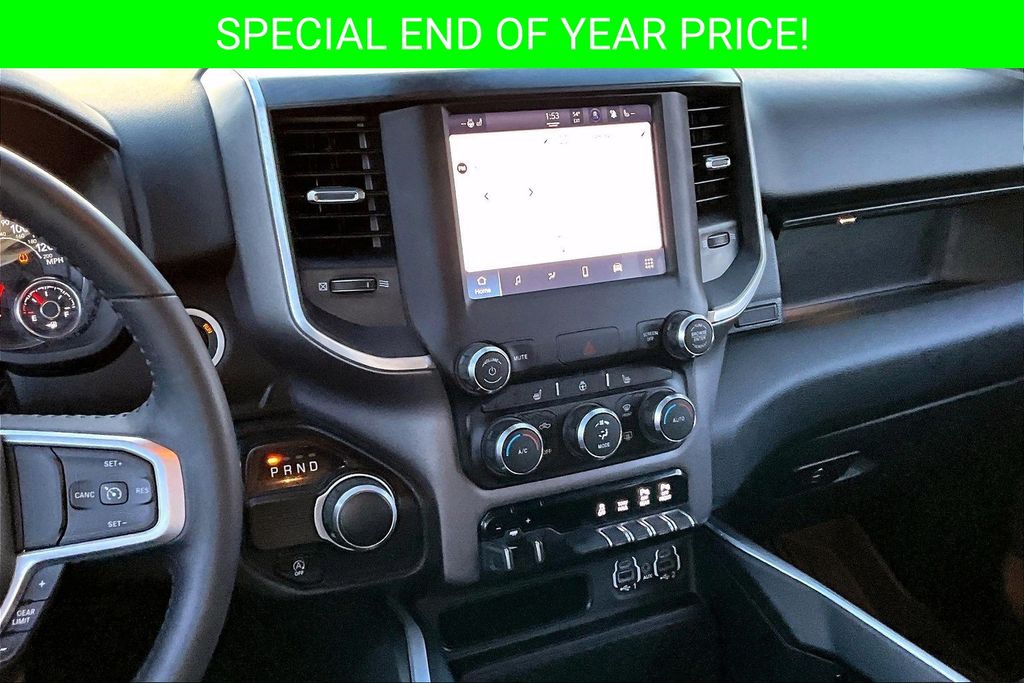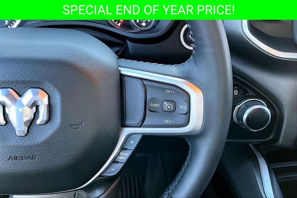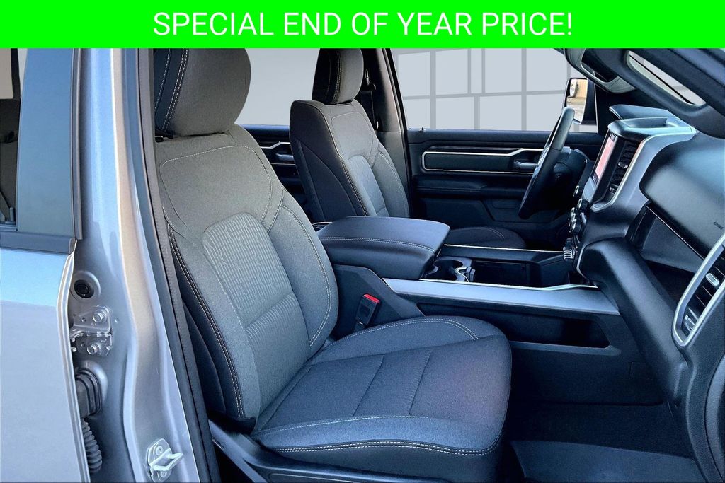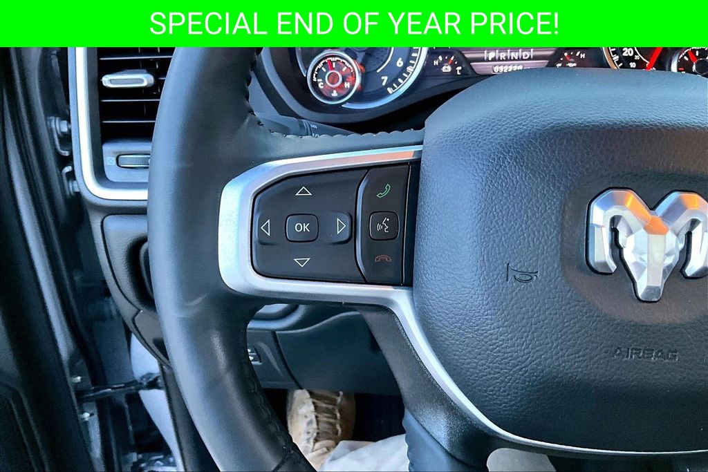 Apple CarPlay, Android Auto, Back Up Camera, Heated Seats, Heated Steering Wheel, Power Drivers Seat, Remote Start, Tow Package, 1500 Big Horn/Lone Star, 4D Crew Cab, HEMI 5.7L V8 Multi Displacement VVT eTorque, 8-Speed Automatic, RWD, Billet Silver Metallic Clearcoat, Black Cloth, 115V Auxiliary Power Outlet, 2nd Row In Floor Storage Bins, 3 Rear Seat Head Restraints, 4 Way Front Headrests, 4-Wheel Disc Brakes, 400W Inverter, 4G LTE Wi-Fi Hot Spot, 8.4" Touchscreen Display, 9 Amplified Speakers w/Subwoofer, Accent Color Premium Power Mirrors, Air Conditioning ATC w/Dual Zone Control, Anti-Spin Differential Rear Axle, Apple CarPlay, Auto-Dimming Exterior Driver Mirror, Auto-Dimming Rear-View Mirror, Big Horn Badge, Big Horn Level 2 Equipment Group (DISC), Black Headlamp Bezels, Black Premium Power Mirrors, Bluetooth Handsfree Phone & Audio, Body Color Front Bumper, Body Color Rear Bumper w/Step Pads, Brake assist, Bucket Seats, Class IV Receiver Hitch, Cloth Bench Seat, Deluxe Cloth Bucket Seats, Dual Exhaust w/Black Tips, Emergency communication system: SiriusXM Guardian, Exterior Parking Camera Rear, Front Fog Lamps, Front Seat Back Map Pockets, Front wheel independent suspension, Fully automatic headlights, Google Android Auto, GPS Antenna Input, Heated door mirrors, Heated Front Seats, Heated Steering Wheel, Integrated Center Stack Radio, Integrated Voice Command w/Bluetooth, Leather steering wheel, LED Footwell Lighting, Manual Adjust 4-Way Front Passenger Seat, Media Hub w/2 Charge Only USBs, Mopar Black Tubular Side Steps, Night Edition, ParkSense Front/Rear Park Assist w/Stop, Power 2-Way Driver Lumbar Adjust, Power 8-Way Driver Seat, Power Adjustable Pedals, Power door mirrors, Power-Folding Mirrors, Quick Order Package 27Z Big Horn, Radio: Uconnect 5 W w/8.4" Display, RAM Grille Badge - Black, Rear 60/40 Folding Seat, Rear Power Sliding Window, Rear Window Defroster, Remote keyless entry, Remote Start System, SiriusXM Satellite Radio, Sun Visors w/Illuminated Vanity Mirrors, Telescoping steering wheel, Tilt steering wheel, Trailer Brake Control, Universal Garage Door Opener, USB Host Flip, Wheels: 20" x 9.0" Premium Paint/Polished.
