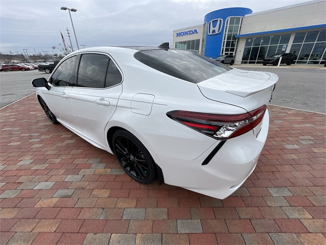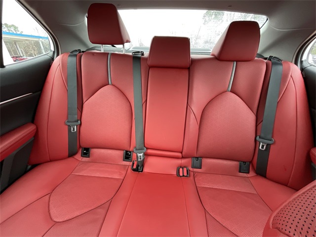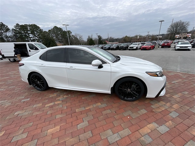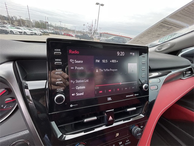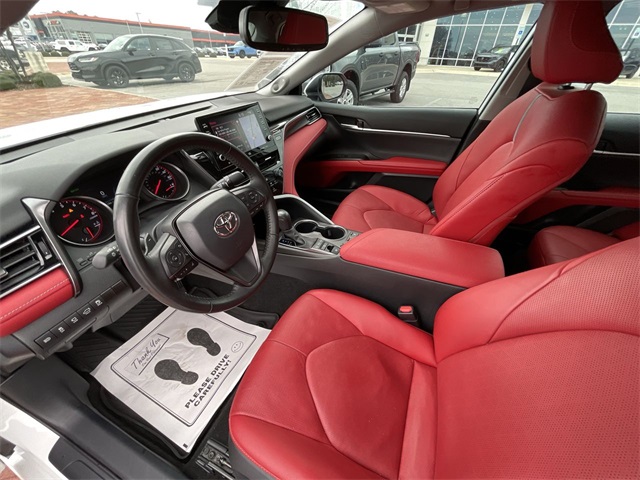2023 Toyota Camry XSE V6 XSE V6 Ice Cap 4D Sedan 3.5L V6 DOHC 24V 8-Speed Automatic FWD This vehicle comes well equipped with ABS brakes, Active Cruise Control, Alloy wheels, Compass, Electronic Stability Control, Front dual zone A/C, Heated door mirrors, Heated front seats, Illuminated entry, Low tire pressure warning, Perforated Leather Seat Trim, Power moonroof, Remote keyless entry, and Traction control ABS brakes, Active Cruise Control, Alloy wheels, Compass, Electronic Stability Control, Front dual zone A/C, Heated door mirrors, Heated front seats, Illuminated entry, Low tire pressure warning, Perforated Leather Seat Trim, Power moonroof, Remote keyless entry, Traction control, 4-Wheel Disc Brakes, 9 Speakers, Air Conditioning, AM/FM radio: SiriusXM, Apple CarPlay/Android Auto, Auto High-beam Headlights, Auto-dimming Rear-View mirror, Automatic temperature control, Brake assist, Bumpers: body-color, Delay-off headlights, Driver door bin, Driver vanity mirror, Dual front impact airbags, Dual front side impact airbags, Emergency communication system: Safety Connect (1-year trial), Exterior Parking Camera Rear, Four wheel independent suspension, Front anti-roll bar, Front Bucket Seats, Front Center Armrest, Front reading lights, Fully automatic headlights, Garage door transmitter: HomeLink, Heads-Up Display, Knee airbag, Leather steering wheel, Multi-Stage Heated Front Bucket Seats, Occupant sensing airbag, Outside temperature display, Overhead airbag, Overhead console, Panic alarm, Passenger door bin, Passenger vanity mirror, Power door mirrors, Power driver seat, Power passenger seat, Power steering, Power windows, Radio data system, Radio: Audio Plus w/JBL, Rear anti-roll bar, Rear reading lights, Rear seat center armrest, Rear side impact airbag, Rear window defroster, Security system, Speed control, Speed-sensing steering, Split folding rear seat, Spoiler, Steering wheel mounted audio controls, Tachometer, Telescoping steering wheel, Tilt steering wheel, Trip computer, Turn signal indicator mirrors, Variably intermittent wipers, and Wheels: 8.0J x 19" Alloy.
