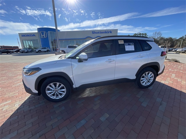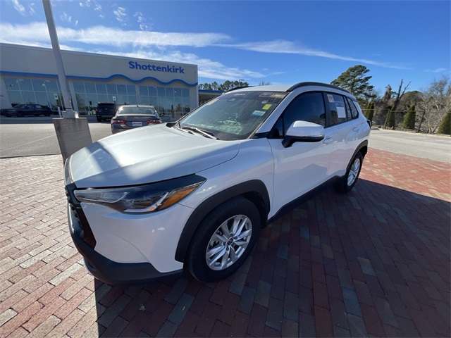 CARFAX One-Owner. 2023 Toyota Corolla Cross LE LE Wind Chill Pearl 4D Sport Utility 2.0L I4 PDI DOHC 16V LEV3-SULEV30 169hp CVT FWD This vehicle comes well equipped with 17" Alloy Wheels, 4-Wheel Disc Brakes, 4.014 Axle Ratio, 6 Speakers, ABS brakes, Air Conditioning, Alloy wheels, AM/FM radio: SiriusXM, Auto High-beam Headlights, Automatic temperature control, Brake assist, Bumpers: body-color, Delay-off headlights, Driver door bin, Driver vanity mirror, Dual front impact airbags, Dual front side impact airbags, Electronic Stability Control, Emergency communication system: Safety Connect (10-year trial), Exterior Parking Camera Rear, Fabric Seat Trim, Front anti-roll bar, Front Bucket Seats, Front Center Armrest, Front reading lights, Front wheel independent suspension, Fully automatic headlights, Heated door mirrors, Illuminated entry, Knee airbag, Leather steering wheel, Low tire pressure warning, Occupant sensing airbag, Outside temperature display, Overhead airbag, Panic alarm, Passenger door bin, Passenger vanity mirror, Power door mirrors, Power steering, Power windows, Radio data system, Radio: 8" Toyota Multimedia, Rear anti-roll bar, Rear side impact airbag, Rear window defroster, Rear window wiper, Remote keyless entry, Roof rack: rails only, Speed control, Split folding rear seat, Spoiler, Steering wheel mounted audio controls, Tachometer, Telescoping steering wheel, Tilt steering wheel, Traction control, Trip computer, Turn signal indicator mirrors, and Variably intermittent wipers.