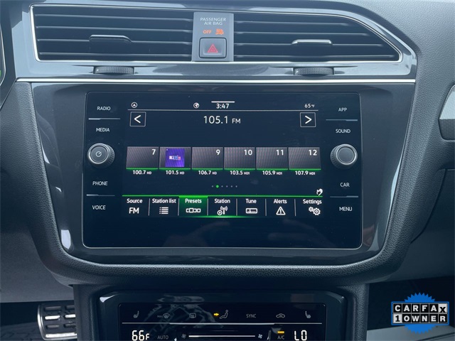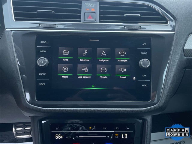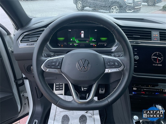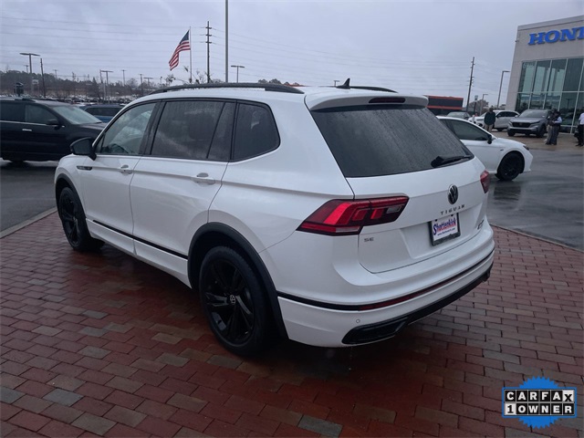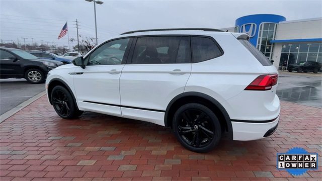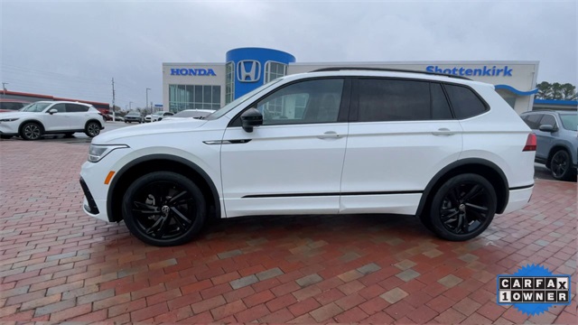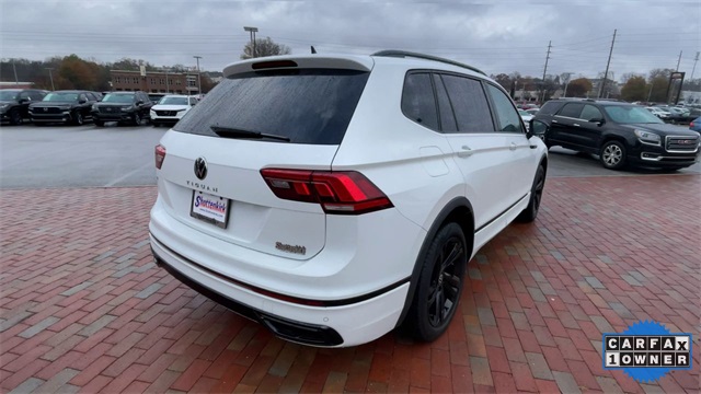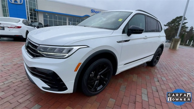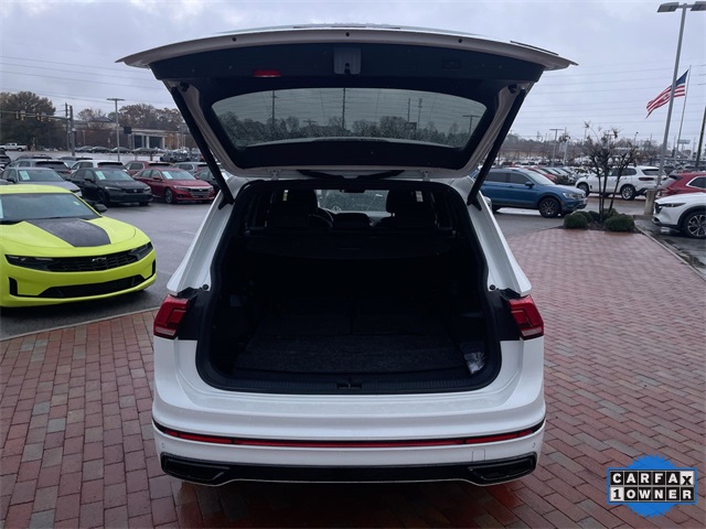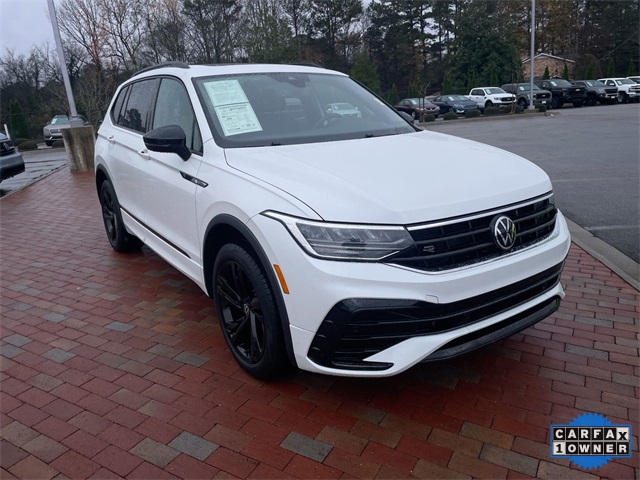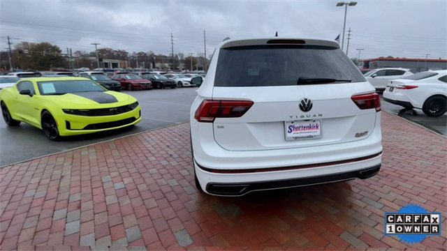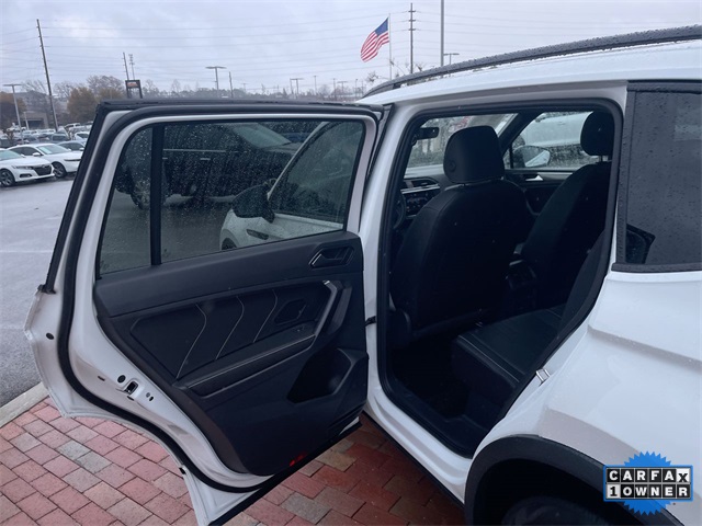 CARFAX One-Owner. 2023 Volkswagen Tiguan 2.0T SE R-Line Black 2.0T SE R-Line Black Opal White 4D Sport Utility 2.0L TSI DOHC 8-Speed Automatic with Tiptronic FWD This vehicle comes well equipped with 3-Row Rubber Monster Mats w/Logo Kit (Set of 5), 3.33 Axle Ratio, 3rd row seats: bench, 4-Wheel Disc Brakes, 4-Wheel Independent Suspension, 6 Speakers, ABS brakes, Air Conditioning, Alloy wheels, AM/FM radio: SiriusXM with 360L, Auto-dimming Rear-View mirror, Auto-Dimming Rearview Mirror w/HomeLink Connect, Automatic temperature control, Brake assist, Bumpers: body-color, Cargo Area Retractable Privacy Cover, Compass, Credit - Steering Wheel Substitution, Delay-off headlights, Driver door bin, Driver vanity mirror, Dual front impact airbags, Dual front side impact airbags, Electronic Stability Control, Emergency communication system: VW Car-Net Safe & Secure 5-year, Exterior Parking Camera Rear, First Aid Kit, Four wheel independent suspension, Front anti-roll bar, Front Bucket Seats, Front Center Armrest, Front dual zone A/C, Front reading lights, Fully automatic headlights, Heated door mirrors, Heated Front Comfort Seats, Heated front seats, Heavy Duty Trunk Liner w/VW CarGo Blocks, Illuminated entry, Leather Shift Knob, Leather steering wheel, Low tire pressure warning, Occupant sensing airbag, Outside temperature display, Overhead airbag, Overhead console, Panic alarm, Passenger door bin, Passenger vanity mirror, Perforated V-Tex Leatherette Seating Surfaces, Power door mirrors, Power driver seat, Power Liftgate, Power moonroof, Power steering, Power windows, Radio data system, Radio: MIB3 Composition Media AM/FM/HD, Rain sensing wipers, Rear anti-roll bar, Rear reading lights, Rear seat center armrest, Rear window defroster, Rear window wiper, Remote keyless entry, Roadside Assistance Kit, Security system, Speed control, Speed-sensing steering, Split folding rear seat, Spoiler, Sport steering wheel, Steering wheel mounted audio controls, Tachometer, Telescoping steering wheel, Tilt steering wheel, Traction control, Trip computer, Turn signal indicator mirrors, Variably intermittent wipers, and Wheels: 19" Black Painted Twin 5-Spoke Alloy.