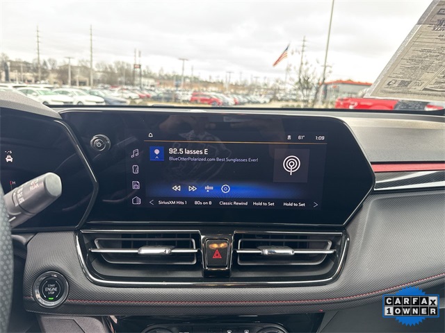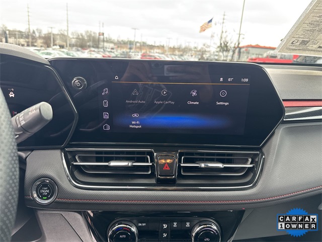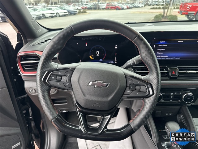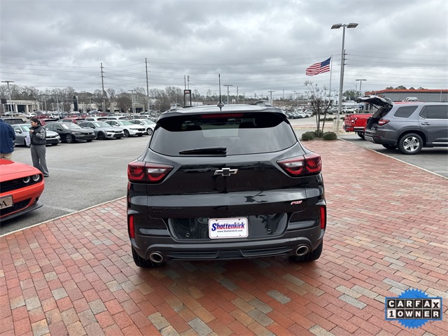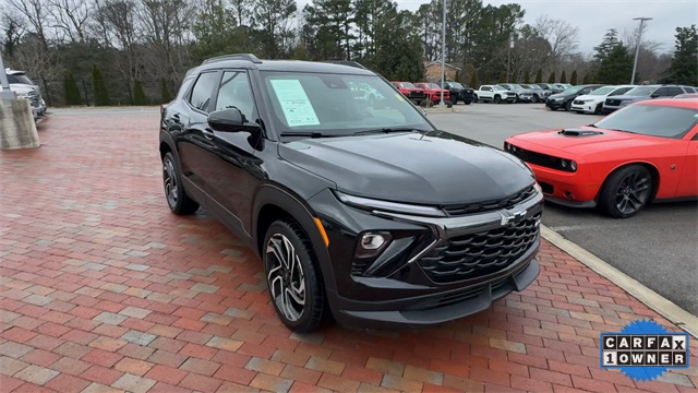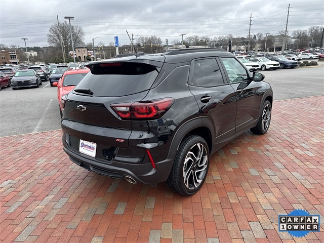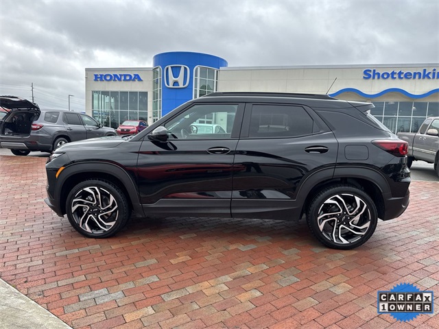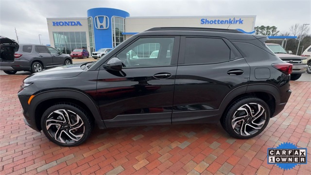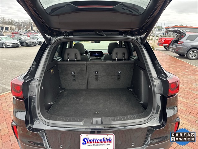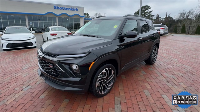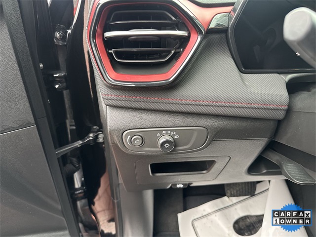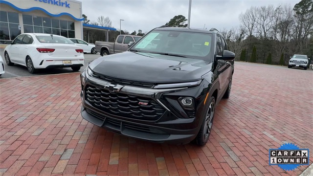 CARFAX One-Owner. 2024 Chevrolet TrailBlazer RS RS Mosaic Black Metallic 4D Sport Utility 1.3L Ecotec Turbo DOHC SIDI w/VVT 9-Speed Automatic AWD This vehicle comes well equipped with Adaptive Cruise & Sound Package (Adaptive Cruise Control and Bose Premium 7-Speaker Audio System Feature), Convenience Package (1 Type-A & 1 Type-C USB Charging-Only Ports, 120-Volt Power Outlet, Cabin Humidity Sensor, Driver & Front Passenger Illuminated Vanity Mirrors, Hands-Free Power Programmable Liftgate, Inside Rear-View Auto-Dimming Mirror, Single-Zone Auto Climate Control Air Conditioning, and Wireless Charging), Driver Confidence Package (Lane Change Alert w/Side Blind Zone Alert, Rear Cross Traffic Alert, and Rear Park Assist), Preferred Equipment Group 1RS, 1 Type-A & 1 Type-C USB Ports, 11" Diagonal HD Color Touchscreen, 2-Way Power Driver Lumbar Seat Adjuster, 3.17 Final Drive Axle Ratio, 4-Way Manual Front Passenger Seat Adjuster, 4-Wheel Disc Brakes, 6 Speakers, 6-Speaker Audio System Feature w/Amplifier, 8-Way Power Driver Seat Adjuster, ABS brakes, Air Conditioning, Alloy wheels, AM/FM radio: SiriusXM, Auto High-beam Headlights, Brake assist, Bumpers: body-color, Chevrolet Connected Access Capable, Compass, Delay-off headlights, Driver door bin, Driver vanity mirror, Dual front impact airbags, Dual front side impact airbags, Dual-Pane Panoramic Power Sunroof, Electronic Stability Control, Emergency communication system: OnStar and Chevrolet connected services capable, Evotex Seat Trim, Exterior Parking Camera Rear, Flat-Folding Front Passenger Seatback, Front & Rear All-Weather Floor Liners (LPO), Front anti-roll bar, Front Bucket Seats, Front Center Armrest, Front reading lights, Front wheel independent suspension, Fully automatic headlights, Heated door mirrors, Heated Driver & Front Passenger Seats, Heated front seats, Heated steering wheel, Illuminated entry, Knee airbag, Low tire pressure warning, Mosaic Black Metallic Roof, Occupant sensing airbag, Overhead airbag, Overhead console, Panic alarm, Passenger door bin, Passenger vanity mirror, Power door mirrors, Power driver seat, Power steering, Power windows, Radio data system, Radio: AM/FM Stereo Audio System, Rear seat center armrest, Rear side impact airbag, Rear window defroster, Rear window wiper, Remote keyless entry, Ride & Handling Suspension, Security system, SiriusXM, Speed control, Split folding rear seat, Spoiler, Steering wheel mounted audio controls, Tachometer, Telescoping steering wheel, Tilt steering wheel, Traction control, Trip computer, Variably intermittent wipers, Wheels: 19" High Gloss Black Machined Aluminum, and Wireless Apple CarPlay/Android Auto.