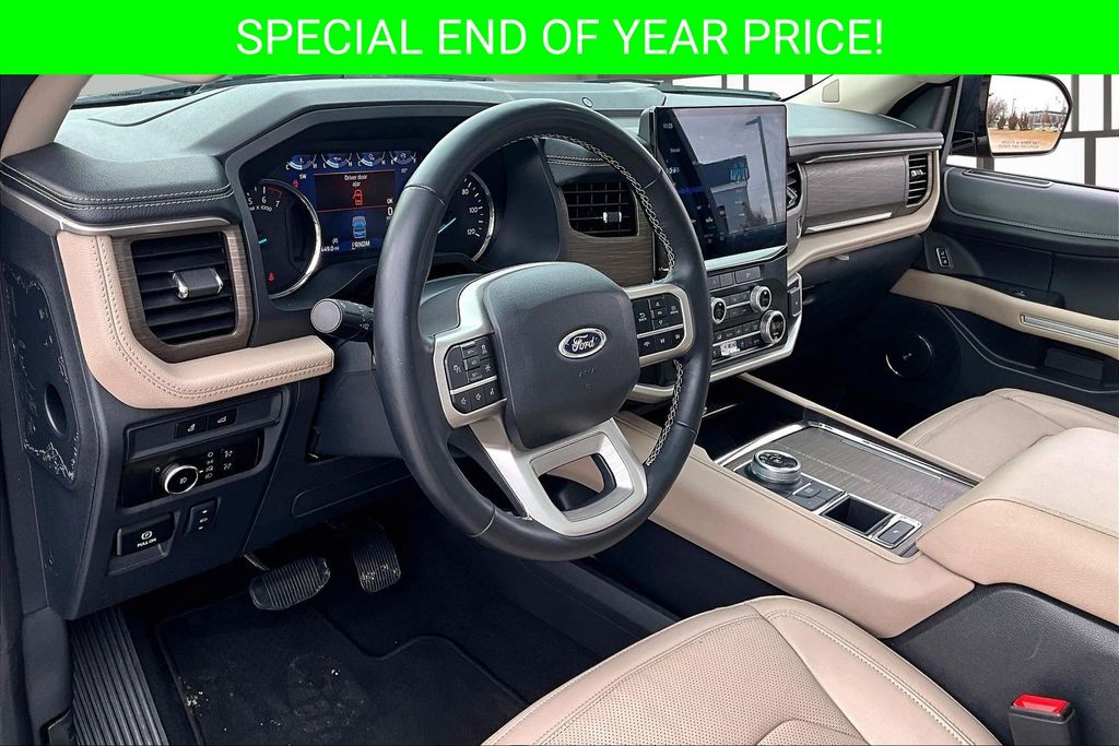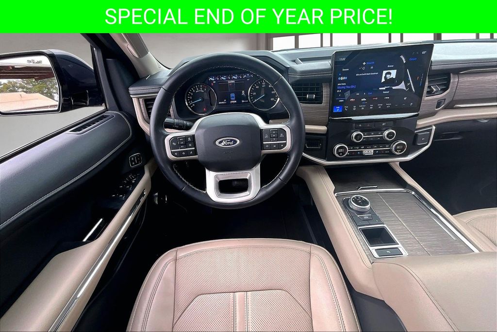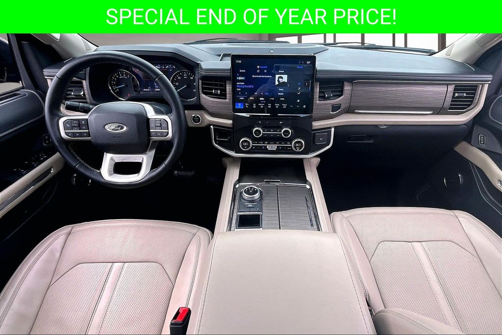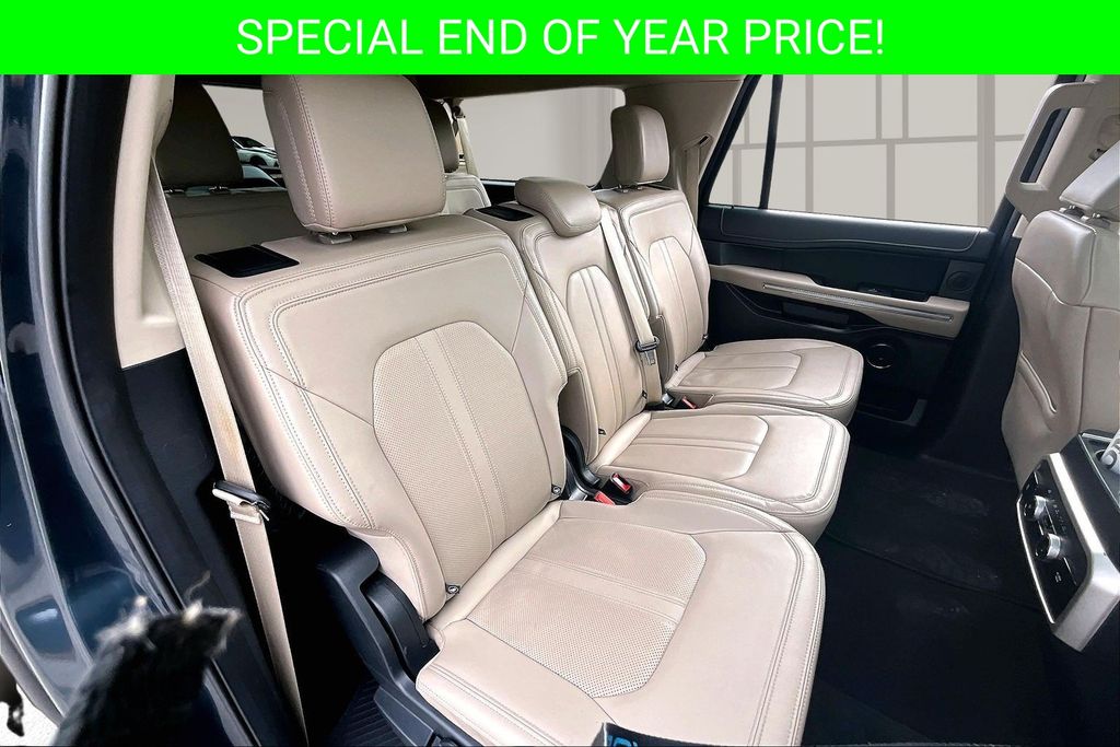 3rd Row Seating, Apple CarPlay, Android Auto, Back Up Camera, Heated Seats, Heated Steering Wheel, Leather Interior, Memory Seats, Navigation, Power Drivers Seat, Power Passenger Seat, Remote Start, Sunroof, Ventilated Seats, B&O Sound System, Expedition Max Limited, 4D Sport Utility, EcoBoost 3.5L V6 GTDi DOHC 24V Twin Turbocharged, 10-Speed Automatic, RWD, Blue Metallic, Sandstone Leather, 2nd Row Power-Folding 40/20/40 Leather Bench Seat, Adjustable pedals, AM/FM radio: SiriusXM with 360L, Auto-dimming door mirrors, Auto-dimming Rear-View mirror, Automatic temperature control, Emergency communication system: SYNC 4 911 Assist, Equipment Group 301A Mid Package, Exterior Parking Camera Rear, Front dual zone A/C, Front fog lights, Garage door transmitter, Heated & Ventilated Leather Front Captain's Chairs, Heated front seats, Heated rear seats, Heated steering wheel, Leather steering wheel, Memory seat, Navigation system: Connected Navigation, Outside temperature display, Pedal memory, Power door mirrors, Power driver seat, Power Liftgate, Power moonroof, Radio: B&O Sound System by Bang & Olufsen, Rain sensing wipers, Reclining 3rd row seat, Remote keyless entry, SiriusXM w/360L, Spoiler, SYNC 4 w/Enhanced Voice Recognition, Telescoping steering wheel, Tilt steering wheel, Turn signal indicator mirrors, Ventilated front seats, Wheels: 20" Bright Machined Aluminum.