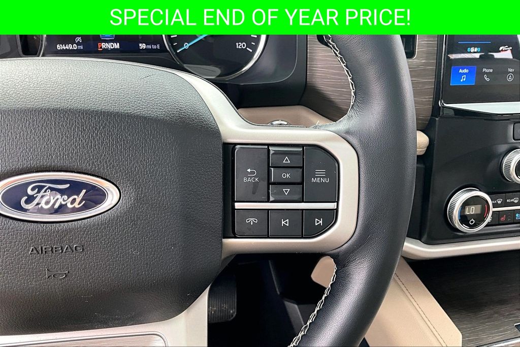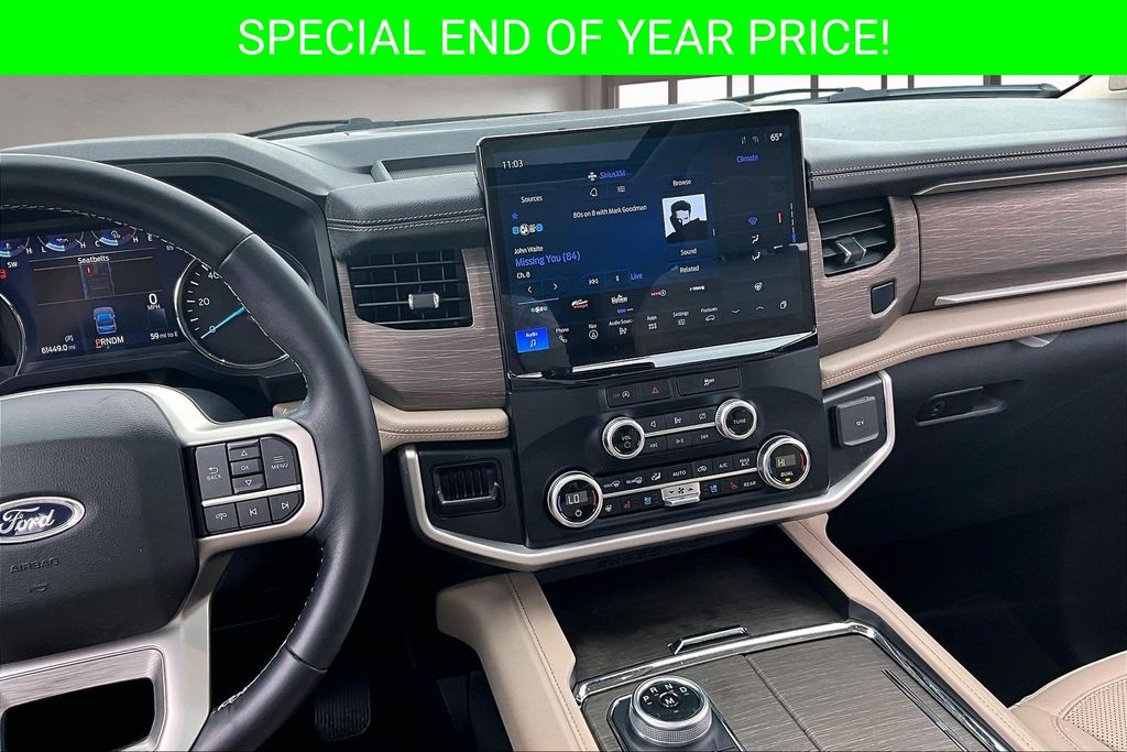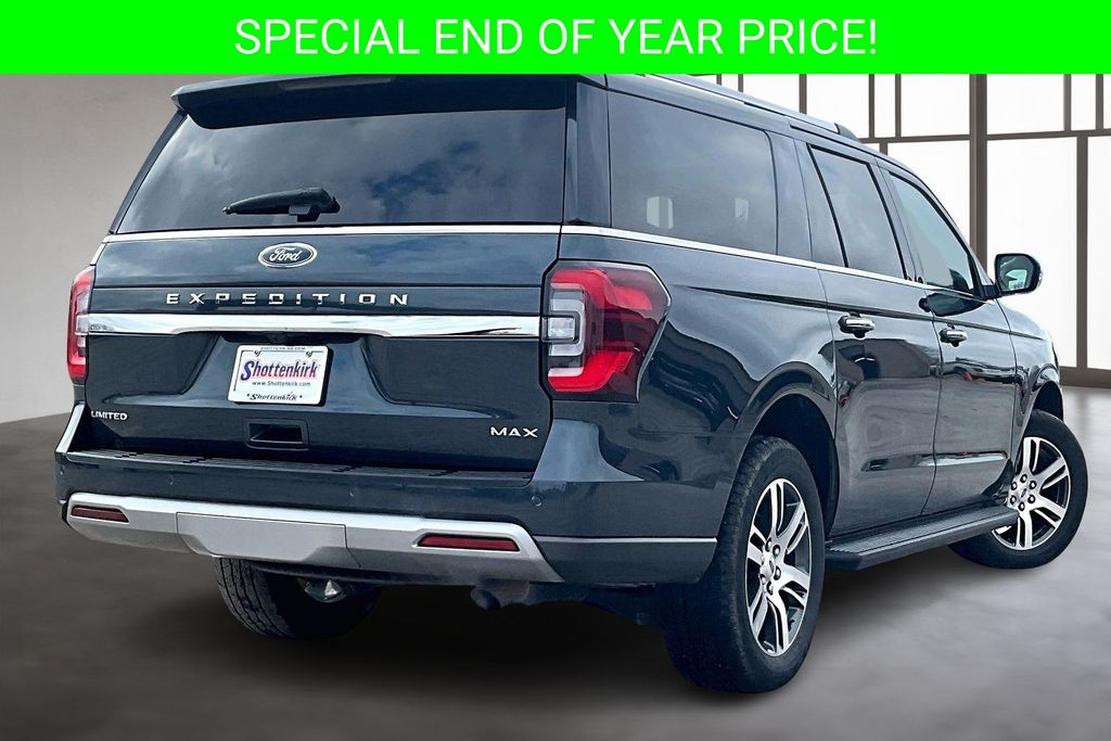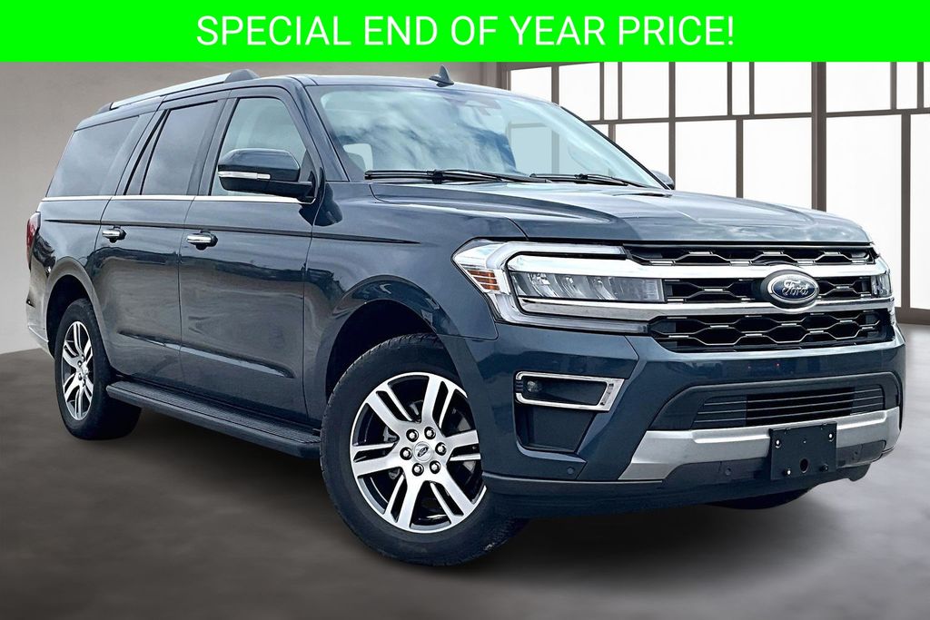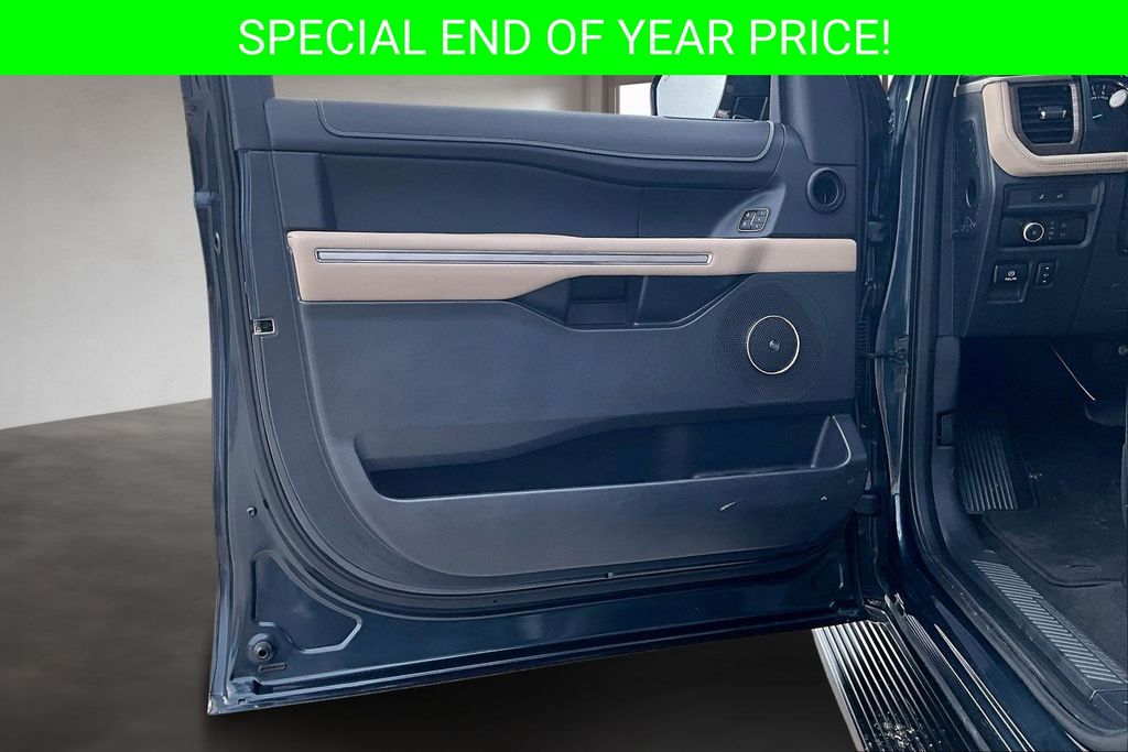 3rd Row Seating, Apple CarPlay, Android Auto, Back Up Camera, Heated Seats, Heated Steering Wheel, Leather Interior, Memory Seats, Navigation, Power Drivers Seat, Power Passenger Seat, Remote Start, Sunroof, Ventilated Seats, B&O Sound System, Expedition Max Limited, 4D Sport Utility, EcoBoost 3.5L V6 GTDi DOHC 24V Twin Turbocharged, 10-Speed Automatic, RWD, Blue Metallic, Sandstone Leather, 2nd Row Power-Folding 40/20/40 Leather Bench Seat, Adjustable pedals, AM/FM radio: SiriusXM with 360L, Auto-dimming door mirrors, Auto-dimming Rear-View mirror, Automatic temperature control, Emergency communication system: SYNC 4 911 Assist, Equipment Group 301A Mid Package, Exterior Parking Camera Rear, Front dual zone A/C, Front fog lights, Garage door transmitter, Heated & Ventilated Leather Front Captain's Chairs, Heated front seats, Heated rear seats, Heated steering wheel, Leather steering wheel, Memory seat, Navigation system: Connected Navigation, Outside temperature display, Pedal memory, Power door mirrors, Power driver seat, Power Liftgate, Power moonroof, Radio: B&O Sound System by Bang & Olufsen, Rain sensing wipers, Reclining 3rd row seat, Remote keyless entry, SiriusXM w/360L, Spoiler, SYNC 4 w/Enhanced Voice Recognition, Telescoping steering wheel, Tilt steering wheel, Turn signal indicator mirrors, Ventilated front seats, Wheels: 20" Bright Machined Aluminum.