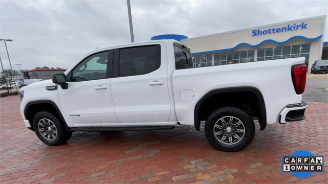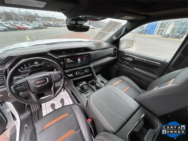 CARFAX One-Owner. 2024 GMC Sierra 1500 AT4 AT4 Summit White 4D Crew Cab EcoTec3 6.2L V8 10-Speed Automatic 4WD This vehicle comes well equipped with AT4 Preferred Package (Power Sliding Rear Window w/Rear Defogger and Universal Home Remote), AT4 Premium Package (Off-Road High Clearance Step (LPO)), Preferred Equipment Group 4SB (120-Volt Bed Mounted Power Outlet, 120-Volt Interior Power Outlet, 2 Charge/Data USB Ports Inside Center Console, 2 Type-C Charge-Only Rear USB Ports, 2 USB Ports, 220 Amp Alternator, Auto-Locking Rear Differential, Black Chrome Header & Grille Insert Bars, Color-Keyed Carpeting Floor Covering, Deep-Tinted Glass, Electric Rear-Window Defogger, Floor-Mounted Center Console, Front Prem Floor Liners w/Removable Carpet Insert, Front Rain-Sensing Wipers, GMC Connected Access Capable, HD Surround Vision, Heated 2nd Row Outboard Seats, Heated Driver & Front Outboard Passenger Seating, Heavy-Duty Air Filter, Hill Descent Control, Hitch View, In-Vehicle Trailering System App, Integrated Trailer Brake Controller, Keyless Open & Start, LED Cargo Area Lighting, OnStar & GMC Connected Services Capable, Perimeter Lighting, Power Door Locks, Power Front Passenger Windows w/Express Up/Down, Power Front Windows w/Driver Express Up/Down, Power Rake & Telescoping Steering Column, Power Rear Windows w/Express Down, Premium Bose 7-Speaker Sound System, Push Button Start, Rear Cross Traffic Braking, Rear Pedestrian Detection, Rear Prem Floor Liners w/Removable Carpet Insert, Rear Wheelhouse Liners, Red Recovery Hooks, Remote Vehicle Starter System, SiriusXM w/360L, Spray-On Pickup Bedliner w/AT4 Logo, Steering Wheel Audio Controls, Theft Deterrent System (Unauthorized Entry), Trailer Camera Provisions, Trailer Side Blind Zone Alert, Ultrasonic Front & Rear Park Assist, Ventilated Driver & Front Passenger Seats, Wi-Fi Hotspot Capable, and Wireless Charging), Technology Package (Bed View Camera, Multicolor 15" Diagonal Head-Up Display, and Rear Camera Mirror), Trailering Package (Hitch Guidance), 10-Way Power Driver Seat Adjuster w/Lumbar, 10-Way Power Passenger Seat Adjuster w/Lumbar, 170 Amp Alternator, 18" x 8.5" Machined Aluminum Wheels, 3.23 Rear Axle Ratio, 4-Wheel Disc Brakes, 7 Speakers, ABS brakes, Air Conditioning, Alloy wheels, AM/FM radio: SiriusXM with 360L, Apple CarPlay/Android Auto, Auto High-beam Headlights, Auto-dimming door mirrors, Auto-dimming Rear-View mirror, Automatic Emergency Braking, Automatic temperature control, Auxiliary External Transmission Oil Cooler, Block heater, Brake assist, Buckle to Drive, Bumpers: body-color, Compass, Delay-off headlights, Driver door bin, Driver Memory, Driver vanity mirror, Dual Active Exhaust, Dual front impact airbags, Dual front side impact airbags, Electronic Stability Control, External Engine Oil Cooling, Following Distance Indicator, Forward Collision Alert, Front anti-roll bar, Front Bucket Seats, Front Center Armrest, Front dual zone A/C, Front fog lights, Front Pedestrian Braking, Front reading lights, Front wheel independent suspension, Fully automatic headlights, GMC MultiPro Tailgate Step Lights (LPO), Heated door mirrors, Heated front seats, Heated rear seats, Heated steering wheel, Illuminated entry, IntelliBeam Automatic High Beam On/Off, Lane Keep Assist w/Lane Departure Warning, Low tire pressure warning, Memory seat, Navigation System, Occupant sensing airbag, Off-Road Suspension, Outside temperature display, Overhead airbag, Overhead console, Panic alarm, Passenger door bin, Passenger vanity mirror, Perforated Front Leather Seat Trim, Power door mirrors, Power driver seat, Power passenger seat, Power steering, Power Sunroof, Power windows, Premium audio system: GMC Infotainment System, Radio data system, Radio: Premium GMC Infotainment Audio System, Rain sensing wipers, Rear reading lights, Rear seat center armrest, Rear step bumper, Rear window defroster, Remote keyless entry, Safety Alert Seat, Security system, Speed control, Speed-sensing steerin