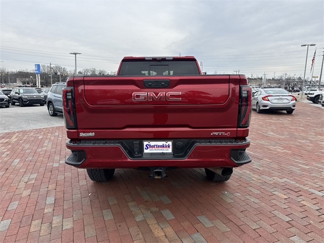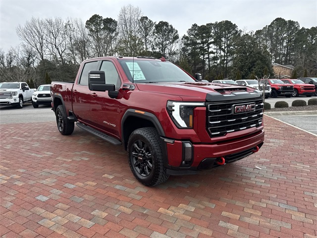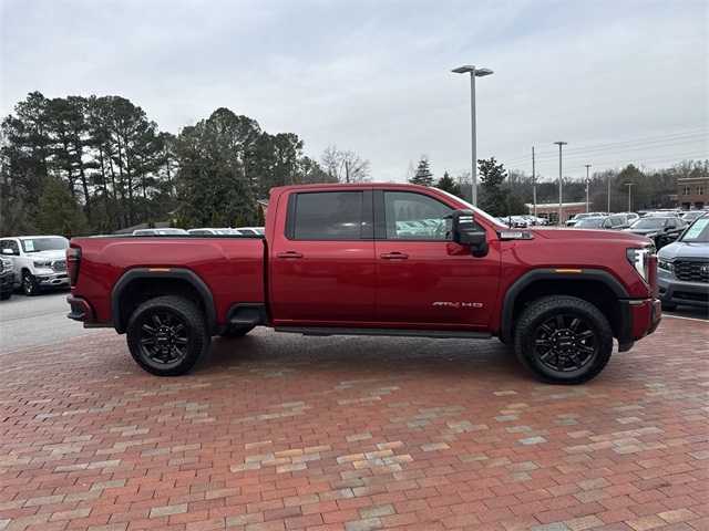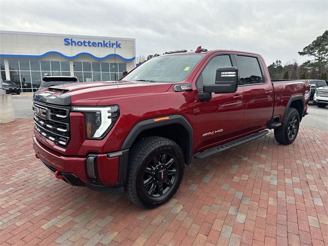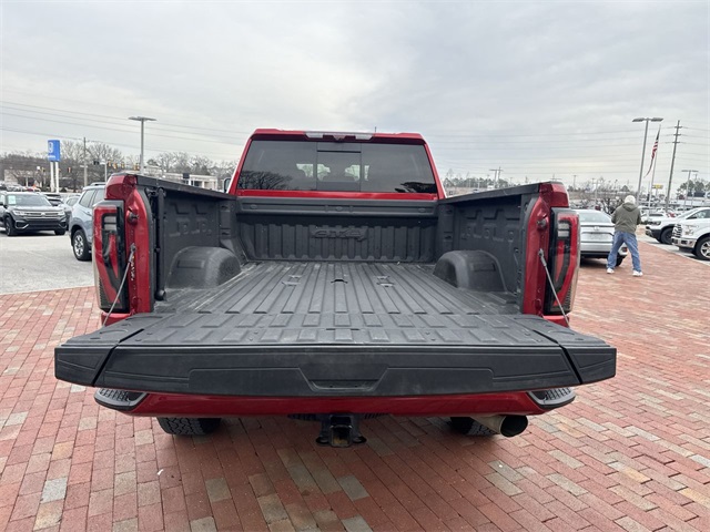 CARFAX One-Owner. 2024 GMC Sierra 2500HD AT4 AT4 Volcanic Red Tintcoat 4D Crew Cab Duramax 6.6L V8 Turbodiesel 10-Speed Automatic 4WD This vehicle comes well equipped with AT4 Preferred Package (Adaptive Cruise Control, LED Smoked Amber Roof Marker Lamps, Power Sliding Rear Window w/Defogger, and Universal Home Remote), AT4 Premium Plus Package (Off-Road High Clearance Step (LPO) and Power Sunroof), Gooseneck/5th Wheel Prep Package, Preferred Equipment Group 4SB (120-Volt Bed Mounted Power Outlet, 120-Volt Instrument Panel Power Outlet, 2 Charge-Only Rear USB Ports, 2 Charge/Data USB Ports Inside Center Console, 2 USB Ports, 2-Speed Active Transfer Case, Bed View Camera w/2 Trailer Camera Provisions, Bose Premium 7-Speaker Sound System, Deep-Tinted Glass, Electric Rear-Window Defogger, Floor-Mounted Center Console, Front Prem Floor Liners w/Removable Carpet Insert, Front Rain-Sensing Wipers, Gloss Black Header Grille & Grille Insert Bars, GMC Connected Access Capable, HD Surround Vision, Heated 2nd Row Outboard Seats, Heated Driver & Front Outboard Passenger Seats, Integrated Trailer Brake Controller, Keyless Open & Start, LED Cargo Area Lighting, Manual Tilt-Wheel/Telescoping Steering Column, OnStar & GMC Connected Services Capable, Power Front Passenger Windows w/Express Up/Down, Push Button Start, Rear Cross Traffic Alert, Rear Prem Floor Liners w/Removable Carpet Insert, Rear Wheelhouse Liners, Remote Vehicle Starter System, Safety Alert Seat, SiriusXM w/360L, Spray-On Bedliner w/AT4 Logo, Steering Wheel Audio Controls, Trailer Cam Provisions & Trailer Viewing Software, Trailer Side Blind Zone Alert, Ultrasonic Front & Rear Park Assist, Unauthorized Entry Theft-Deterrent System, Ventilated Driver & Front Passenger Seats, Wireless Charging, and Wireless Phone Projection), Technology Package (Inside Rearview Auto-Dimming Rear Camera Mirror and Multicolor 15" Diagonal Head-Up Display), X31 Off-Road Package (Hill Descent Control), 10-Way Power Driver Seat Adjuster w/Lumbar, 10-Way Power Passenger Seat Adjuster w/Lumbar, 220-Amp Alternator, 4-Wheel Disc Brakes, 7 Speakers, ABS brakes, Air Conditioning, Alloy wheels, AM/FM radio: SiriusXM with 360L, Apple CarPlay/Android Auto, Auto High-beam Headlights, Auto-dimming door mirrors, Auto-dimming Rear-View mirror, Automatic Emergency Braking, Automatic temperature control, Brake assist, Buckle to Drive, Bumpers: body-color, Compass, Delay-off headlights, Driver door bin, Driver Memory, Driver vanity mirror, Dual front impact airbags, Dual front side impact airbags, Electronic Stability Control, Engine Block Heater, Exhaust Brake, Following Distance Indicator, Forward Collision Alert, Front anti-roll bar, Front Bucket Seats, Front Center Armrest, Front dual zone A/C, Front fog lights, Front Pedestrian Braking, Front reading lights, Front wheel independent suspension, Fully automatic headlights, Heated door mirrors, Heated front seats, Heated rear seats, Heated steering wheel, Heavy-Duty 80 Amp Battery, Hitch Guidance w/Hitch View, Illuminated entry, In-Vehicle Trailering System App, IntelliBeam Automatic High Beam On/Off, Lane Departure Warning System, Low tire pressure warning, Memory seat, Occupant sensing airbag, Off-Road Suspension, Outside temperature display, Overhead airbag, Overhead console, Panic alarm, Passenger door bin, Passenger vanity mirror, Perforated Leather-Appointed Front Seat Trim, Pickup Box, Power door mirrors, Power driver seat, Power passenger seat, Power steering, Power windows, Premium audio system: Premium GMC Infotainment System, Radio: AM/FM w/Premium GMC Infotainment System, Rain sensing wipers, Rear reading lights, Rear seat center armrest, Rear step bumper, Rear window defroster, Remote keyless entry, Security system, Speed control, Speed-sensing steering, Split folding rear seat, Steering wheel mounted audio controls, Tachometer, Telescoping steering wheel, Tilt steering wheel, Traction control, Trip computer, Turn signal indicator mirrors, Variably i