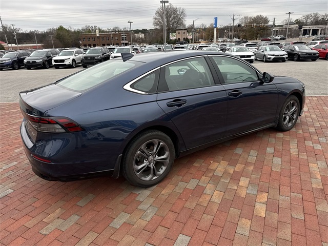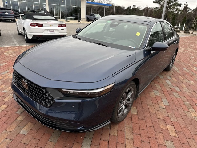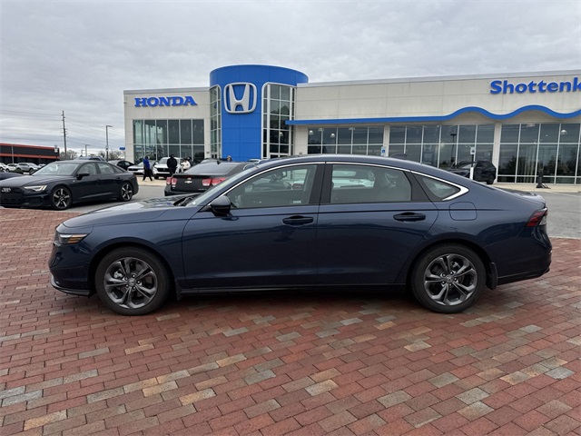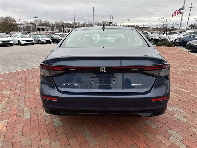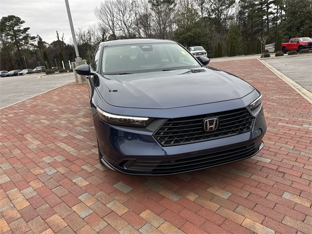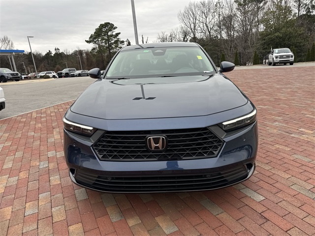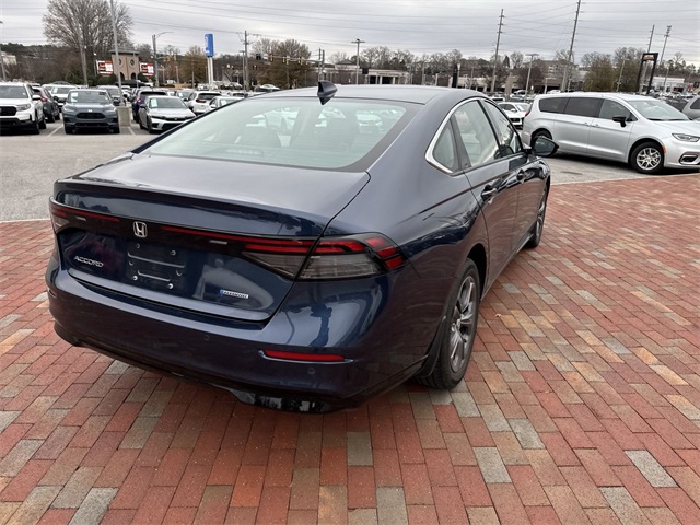Recent Arrival! CARFAX One-Owner. Certified. 2024 Honda Accord Hybrid EX-L EX-L Canyon River Blue Metallic 4D Sedan 2.0L 16V DOHC eCVT FWD This vehicle comes well equipped with 4-Wheel Disc Brakes, 8 Speakers, ABS brakes, Adaptive Cruise Control: Adaptive Cruise Control (ACC) with Low-Speed Follow, Air Conditioning, Alloy wheels, AM/FM radio, Apple CarPlay/Android Auto, Auto High-beam Headlights, Auto-dimming Rear-View mirror, Automatic temperature control, Blind Spot Information (BSI) System warning, Brake assist, Bumpers: body-color, Compass, Delay-off headlights, Driver door bin, Driver vanity mirror, Dual front impact airbags, Dual front side impact airbags, Electronic Stability Control, Emergency communication system: HondaLink, Exterior Parking Camera Rear, Four wheel independent suspension, Front anti-roll bar, Front Bucket Seats, Front Center Armrest, Front dual zone A/C, Front reading lights, Fully automatic headlights, Heated door mirrors, Heated Front Bucket Seats, Heated front seats, Illuminated entry, Knee airbag, Lane departure: Lane Keeping Assist System (LKAS) active, Leather Shift Knob, Leather steering wheel, Leather-Trimmed Seat Trim, Low tire pressure warning, Memory seat, Occupant sensing airbag, Outside temperature display, Overhead airbag, Overhead console, Panic alarm, Passenger door bin, Passenger vanity mirror, Power door mirrors, Power driver seat, Power moonroof, Power passenger seat, Power steering, Power windows, Radio data system, Radio: 180-Watt Audio System, Rear anti-roll bar, Rear reading lights, Rear seat center armrest, Rear side impact airbag, Rear window defroster, Remote keyless entry, Security system, Speed control, Speed-sensing steering, Speed-Sensitive Wipers, Split folding rear seat, Steering wheel mounted audio controls, Telescoping steering wheel, Tilt steering wheel, Traction control, Trip computer, Turn signal indicator mirrors, Variably intermittent wipers, and Wheels: 17" x 7.5J Pewter Gray.