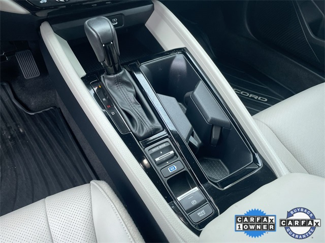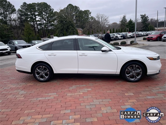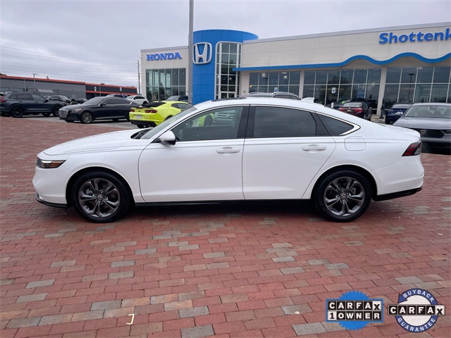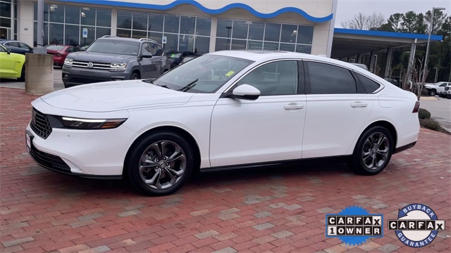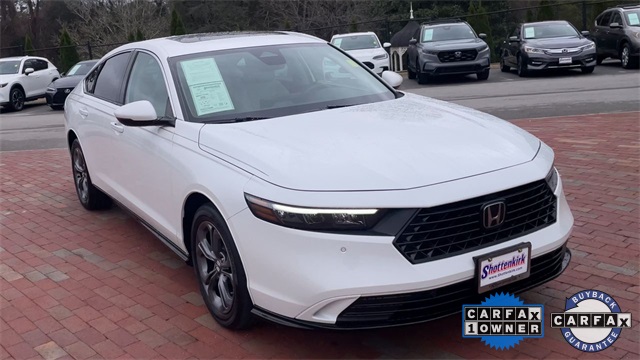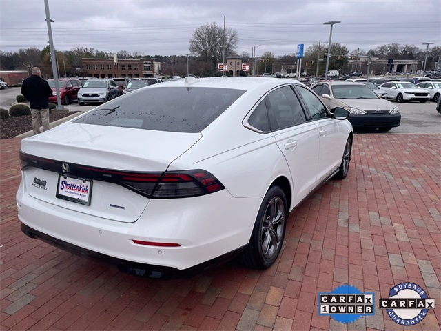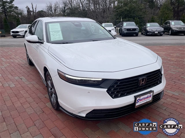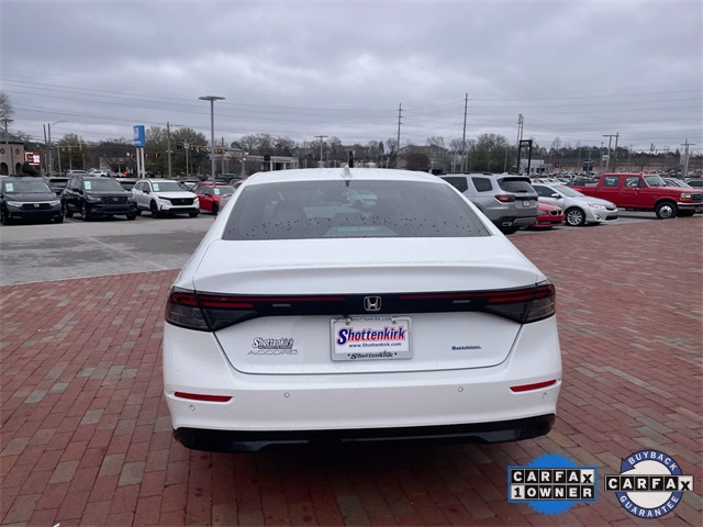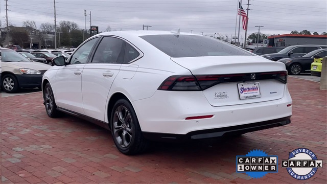 CARFAX One-Owner. Certified. 2024 Honda Accord Hybrid EX-L EX-L Platinum White Pearl 4D Sedan 2.0L 16V DOHC eCVT FWD This vehicle comes well equipped with 4-Wheel Disc Brakes, 8 Speakers, ABS brakes, Adaptive Cruise Control: Adaptive Cruise Control (ACC) with Low-Speed Follow, Air Conditioning, Alloy wheels, AM/FM radio, Apple CarPlay/Android Auto, Auto High-beam Headlights, Auto-dimming Rear-View mirror, Automatic temperature control, Blind Spot Information (BSI) System warning, Brake assist, Bumpers: body-color, Compass, Delay-off headlights, Driver door bin, Driver vanity mirror, Dual front impact airbags, Dual front side impact airbags, Electronic Stability Control, Emergency communication system: HondaLink, Exterior Parking Camera Rear, Four wheel independent suspension, Front anti-roll bar, Front Bucket Seats, Front Center Armrest, Front dual zone A/C, Front reading lights, Fully automatic headlights, Heated door mirrors, Heated Front Bucket Seats, Heated front seats, Illuminated entry, Knee airbag, Lane departure: Lane Keeping Assist System (LKAS) active, Leather Shift Knob, Leather steering wheel, Leather-Trimmed Seat Trim, Low tire pressure warning, Memory seat, Occupant sensing airbag, Outside temperature display, Overhead airbag, Overhead console, Panic alarm, Passenger door bin, Passenger vanity mirror, Power door mirrors, Power driver seat, Power moonroof, Power passenger seat, Power steering, Power windows, Radio data system, Radio: 180-Watt Audio System, Rear anti-roll bar, Rear reading lights, Rear seat center armrest, Rear side impact airbag, Rear window defroster, Remote keyless entry, Security system, Speed control, Speed-sensing steering, Speed-Sensitive Wipers, Split folding rear seat, Steering wheel mounted audio controls, Telescoping steering wheel, Tilt steering wheel, Traction control, Trip computer, Turn signal indicator mirrors, Variably intermittent wipers, and Wheels: 17" x 7.5J Pewter Gray.