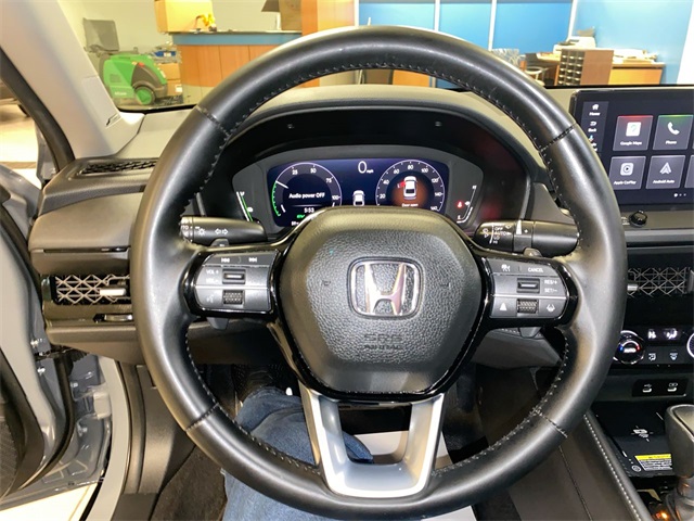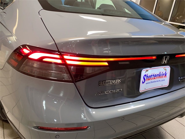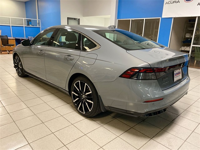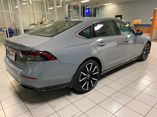 Urban Gray Pearl 2024 Honda Accord Hybrid Touring FWD eCVT 2.0L 16V DOHC 12 Speakers, 4-Wheel Disc Brakes, ABS brakes, Adaptive Cruise Control: Adaptive Cruise Control (ACC) with Low-Speed Follow, Adaptive suspension, Air Conditioning, Alloy wheels, AM/FM radio, Apple CarPlay/Android Auto, Auto High-beam Headlights, Auto-dimming Rear-View mirror, Automatic temperature control, Blind Spot Information (BSI) System warning, Bose Premium Sound System, Brake assist, Bumpers: body-color, Compass, Delay-off headlights, Driver door bin, Driver vanity mirror, Dual front impact airbags, Dual front side impact airbags, Electronic Stability Control, Emergency communication system: HondaLink, Exterior Parking Camera Rear, Four wheel independent suspension, Front anti-roll bar, Front Bucket Seats, Front Center Armrest, Front dual zone A/C, Front reading lights, Fully automatic headlights, Heads-Up Display, Heated & Ventilated Front Bucket Seats, Heated door mirrors, Heated front seats, Heated rear seats, Illuminated entry, Knee airbag, Lane departure: Lane Keeping Assist System (LKAS) active, Leather Shift Knob, Leather steering wheel, Leather-Trimmed Seat Trim, Low tire pressure warning, Memory seat, Navigation System, Occupant sensing airbag, Outside temperature display, Overhead airbag, Overhead console, Panic alarm, Passenger door bin, Passenger vanity mirror, Power door mirrors, Power driver seat, Power moonroof, Power passenger seat, Power steering, Power windows, Radio data system, Rain sensing wipers, Rear anti-roll bar, Rear reading lights, Rear seat center armrest, Rear side impact airbag, Rear window defroster, Remote keyless entry, Security system, Speed control, Speed-sensing steering, Speed-Sensitive Wipers, Split folding rear seat, Steering wheel mounted audio controls, Telescoping steering wheel, Tilt steering wheel, Traction control, Trip computer, Turn signal indicator mirrors, Variably intermittent wipers, Ventilated front seats, Wheels: 19" x 8.5J Berlina Black.