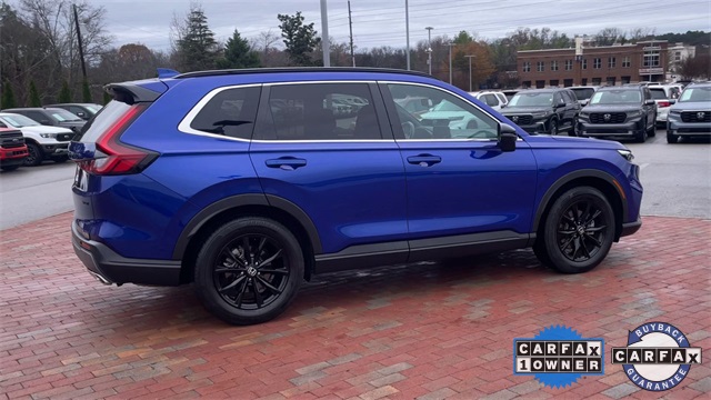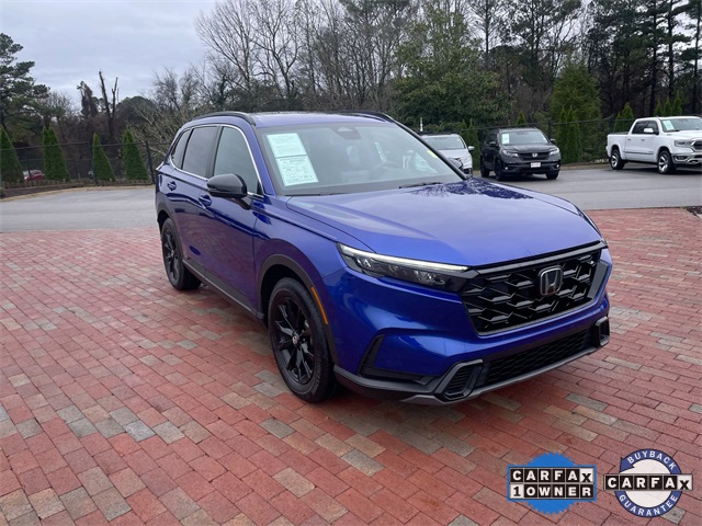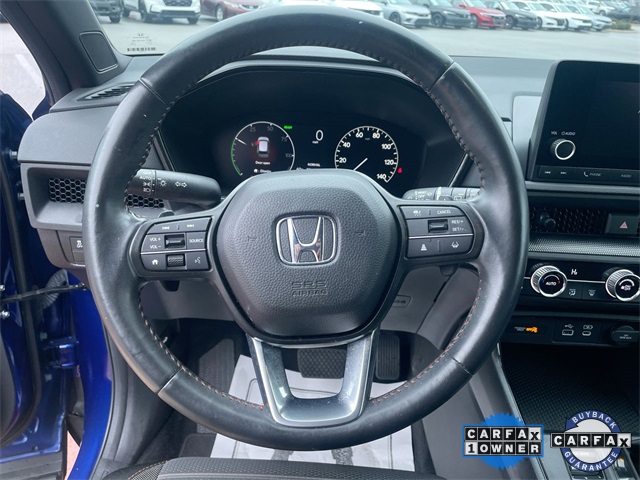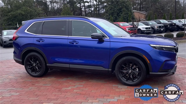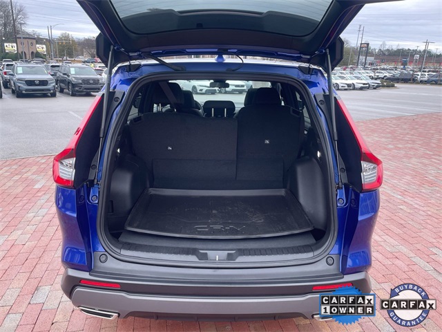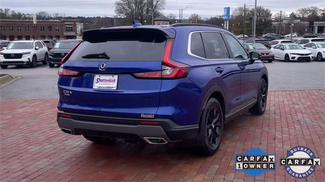 CARFAX One-Owner. Certified. 2024 Honda CR-V Hybrid Sport Sport Still Night Pearl 4D Sport Utility 2.0L I4 DOHC 16V eCVT FWD This vehicle comes well equipped with 4-Wheel Disc Brakes, 4.438 Axle Ratio, 6 Speakers, ABS brakes, Adaptive Cruise Control: Adaptive Cruise Control (ACC) with Low-Speed Follow, Air Conditioning, Alloy wheels, Apple CarPlay/Android Auto, Auto High-beam Headlights, Automatic temperature control, Blind Spot Information (BSI) System warning, Brake assist, Bumpers: body-color, Cloth Seat Trim, Compass, Delay-off headlights, Driver door bin, Driver vanity mirror, Dual front impact airbags, Dual front side impact airbags, Electronic Stability Control, Exterior Parking Camera Rear, Four wheel independent suspension, Front anti-roll bar, Front Bucket Seats, Front Center Armrest, Front dual zone A/C, Front reading lights, Fully automatic headlights, Heated door mirrors, Heated Front Bucket Seats, Heated front seats, Illuminated entry, Knee airbag, Leather Shift Knob, Leather steering wheel, Low tire pressure warning, Occupant sensing airbag, Outside temperature display, Overhead airbag, Overhead console, Panic alarm, Passenger door bin, Passenger vanity mirror, Power door mirrors, Power driver seat, Power moonroof, Power steering, Power windows, Radio data system, Radio: 240-Watt AM/FM Audio System, Rear anti-roll bar, Rear reading lights, Rear seat center armrest, Rear side impact airbag, Rear window defroster, Rear window wiper, Remote keyless entry, Security system, Speed control, Speed-sensing steering, Speed-Sensitive Wipers, Split folding rear seat, Spoiler, Steering wheel mounted audio controls, Telescoping steering wheel, Tilt steering wheel, Traction control, Trip computer, Turn signal indicator mirrors, Variably intermittent wipers, and Wheels: 18" Berlina Black Alloy.
