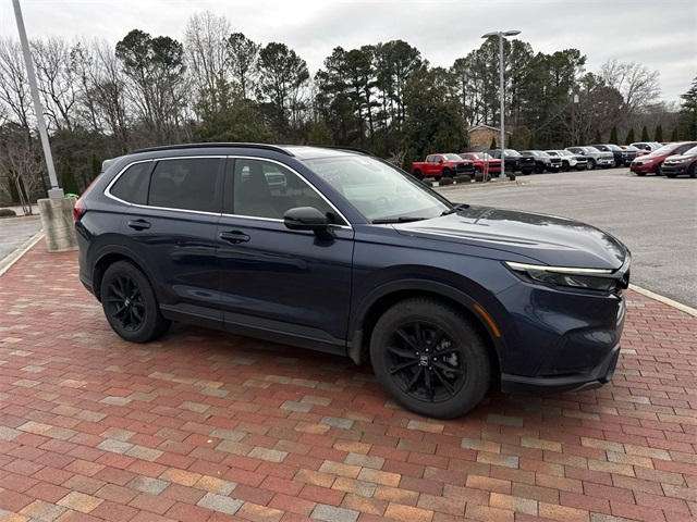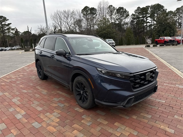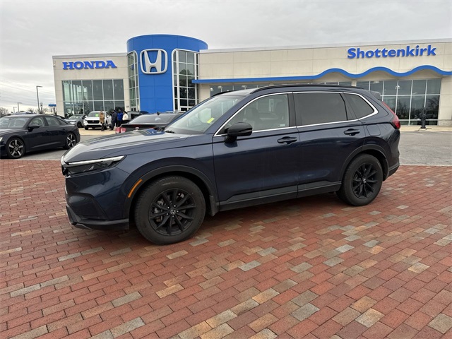 Recent Arrival! CARFAX One-Owner. Certified. 2024 Honda CR-V Hybrid Sport-L Sport-L Canyon River Blue Metallic 4D Sport Utility 2.0L I4 DOHC 16V eCVT FWD This vehicle comes well equipped with 4-Wheel Disc Brakes, 4.438 Axle Ratio, 8 Speakers, ABS brakes, Adaptive Cruise Control: Adaptive Cruise Control (ACC) with Low-Speed Follow, Air Conditioning, Alloy wheels, AM/FM radio: SiriusXM, Auto High-beam Headlights, Auto-dimming Rear-View mirror, Automatic temperature control, Blind Spot Information (BSI) System warning, Brake assist, Bumpers: body-color, Compass, Delay-off headlights, Driver door bin, Driver vanity mirror, Dual front impact airbags, Dual front side impact airbags, Electronic Stability Control, Exterior Parking Camera Rear, Four wheel independent suspension, Front anti-roll bar, Front Bucket Seats, Front Center Armrest, Front dual zone A/C, Front reading lights, Fully automatic headlights, Heated door mirrors, Heated Front Bucket Seats, Heated front seats, Illuminated entry, Knee airbag, Leather Seat Trim, Leather Shift Knob, Leather steering wheel, Low tire pressure warning, Memory seat, Occupant sensing airbag, Outside temperature display, Overhead airbag, Overhead console, Panic alarm, Passenger door bin, Passenger vanity mirror, Power door mirrors, Power driver seat, Power Liftgate, Power moonroof, Power passenger seat, Power steering, Power windows, Radio data system, Radio: 320-Watt AM/FM/HD/SiriusXM Audio System, Rear anti-roll bar, Rear reading lights, Rear seat center armrest, Rear side impact airbag, Rear window defroster, Rear window wiper, Remote keyless entry, Security system, Speed control, Speed-sensing steering, Speed-Sensitive Wipers, Split folding rear seat, Spoiler, Steering wheel mounted audio controls, Telescoping steering wheel, Tilt steering wheel, Traction control, Trip computer, Turn signal indicator mirrors, Variably intermittent wipers, Wheels: 18" Berlina Black Alloy, and Wireless Apple CarPlay/Wireless Android Auto.