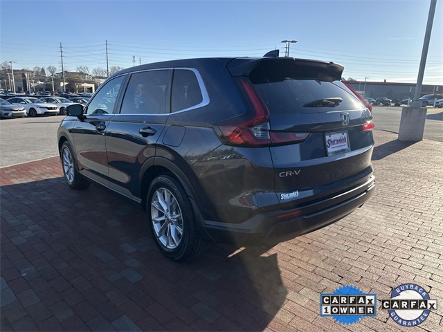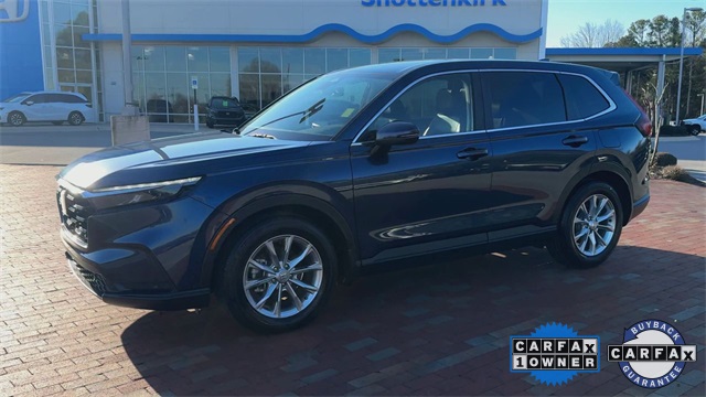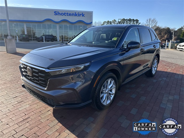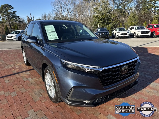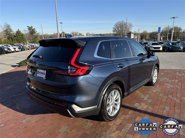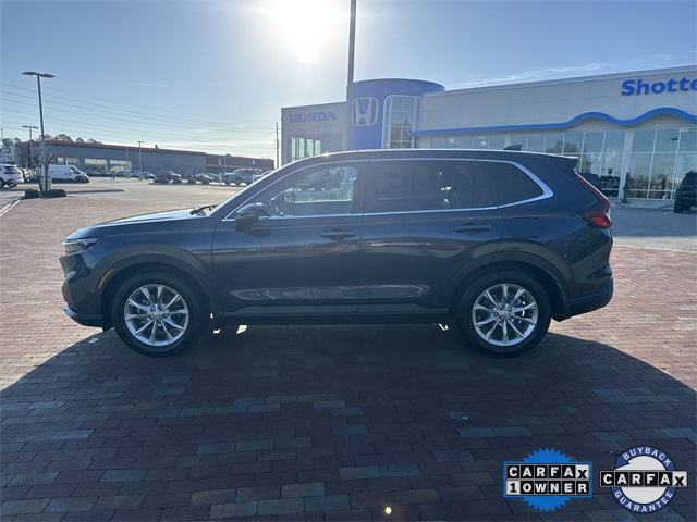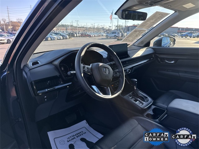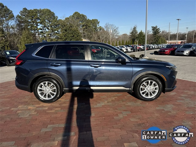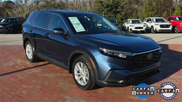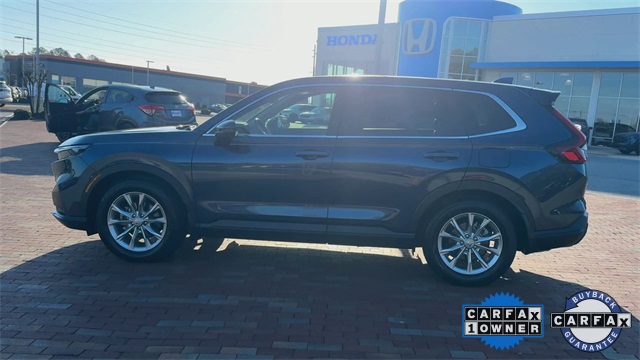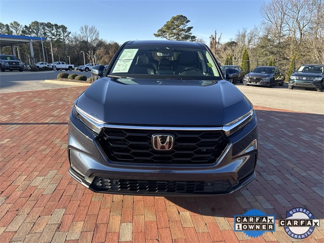 CARFAX One-Owner. Certified. 2024 Honda CR-V EX-L EX-L Canyon River Blue Metallic 4D Sport Utility 1.5L I4 DOHC 16V CVT FWD This vehicle comes well equipped with 4-Wheel Disc Brakes, 5.64 Axle Ratio, 8 Speakers, ABS brakes, Adaptive Cruise Control: Adaptive Cruise Control (ACC) with Low-Speed Follow, Air Conditioning, Alloy wheels, AM/FM radio: SiriusXM, Auto High-beam Headlights, Auto-dimming Rear-View mirror, Automatic temperature control, Blind Spot Information (BSI) System warning, Brake assist, Bumpers: body-color, Compass, Delay-off headlights, Driver door bin, Driver vanity mirror, Dual front impact airbags, Dual front side impact airbags, Electronic Stability Control, Exterior Parking Camera Rear, Four wheel independent suspension, Front anti-roll bar, Front Bucket Seats, Front Center Armrest, Front dual zone A/C, Front reading lights, Fully automatic headlights, Heated door mirrors, Heated Front Bucket Seats, Heated front seats, Illuminated entry, Knee airbag, Leather Seat Trim, Leather Shift Knob, Leather steering wheel, Low tire pressure warning, Memory seat, Occupant sensing airbag, Outside temperature display, Overhead airbag, Overhead console, Panic alarm, Passenger door bin, Passenger vanity mirror, Power door mirrors, Power driver seat, Power Liftgate, Power moonroof, Power passenger seat, Power steering, Power windows, Radio data system, Radio: 320-Watt AM/FM/HD/SiriusXM Audio System, Rear anti-roll bar, Rear reading lights, Rear seat center armrest, Rear side impact airbag, Rear window defroster, Rear window wiper, Remote keyless entry, Security system, Speed control, Speed-sensing steering, Speed-Sensitive Wipers, Split folding rear seat, Spoiler, Steering wheel mounted audio controls, Tachometer, Telescoping steering wheel, Tilt steering wheel, Traction control, Trip computer, Turn signal indicator mirrors, Variably intermittent wipers, Wheels: 18" Sparkle Silver Metallic, and Wireless Apple CarPlay/Wireless Android Auto.