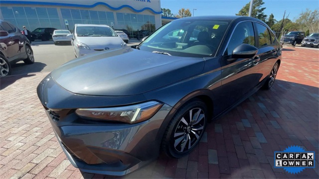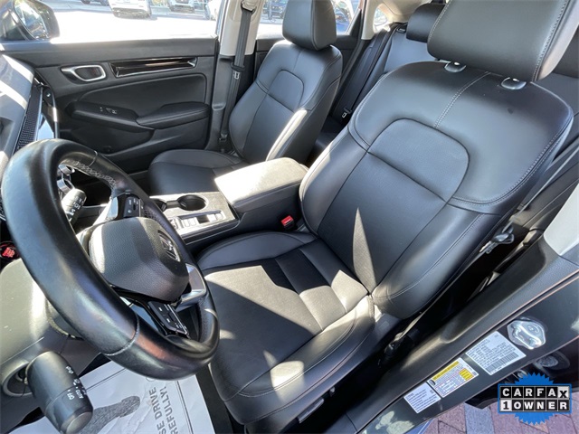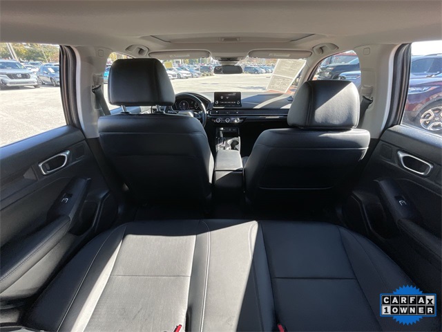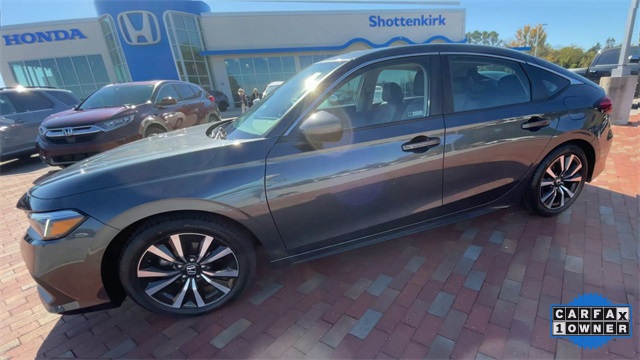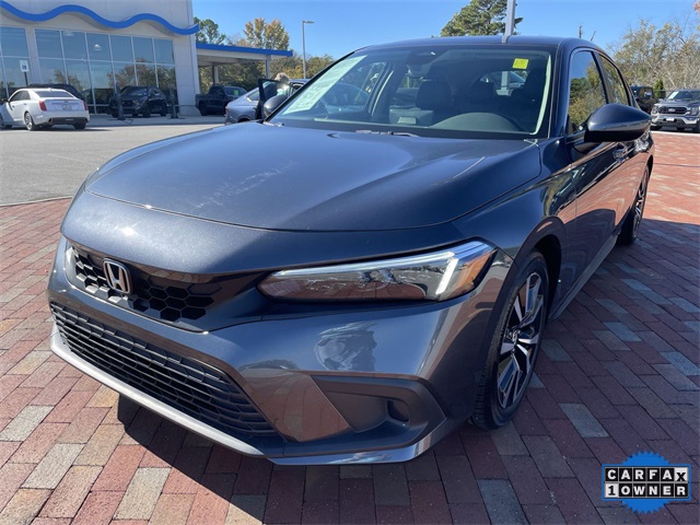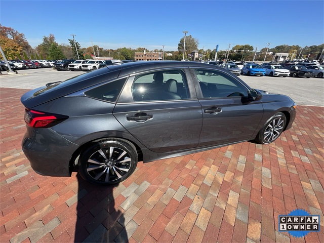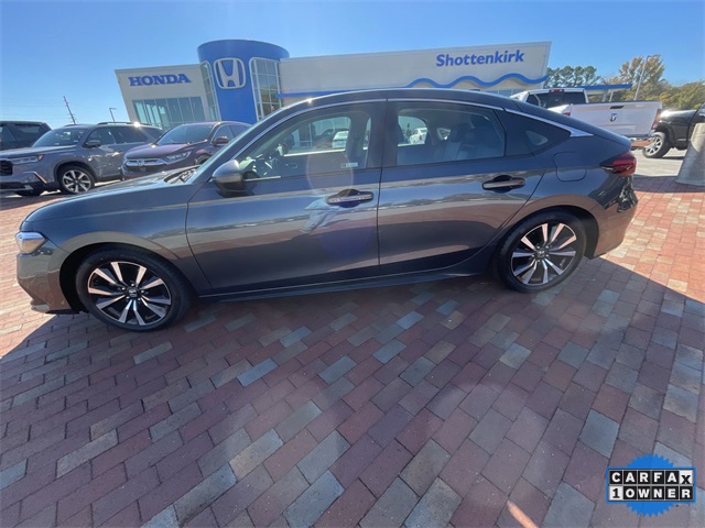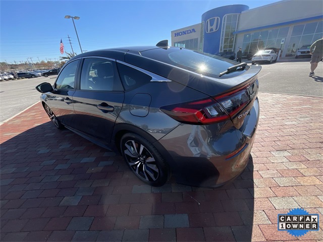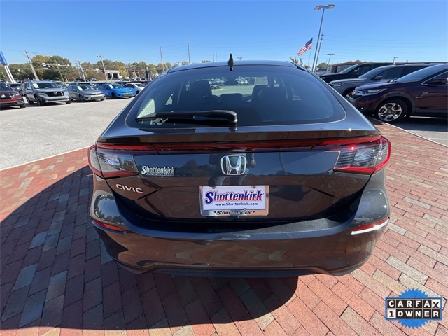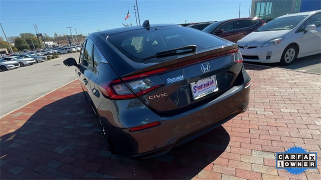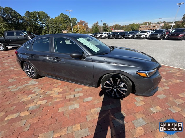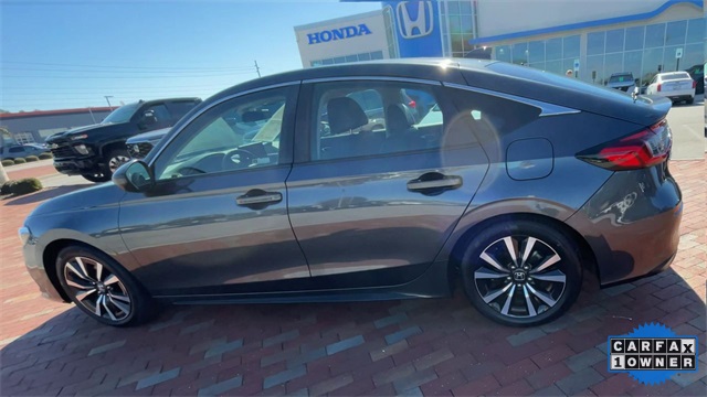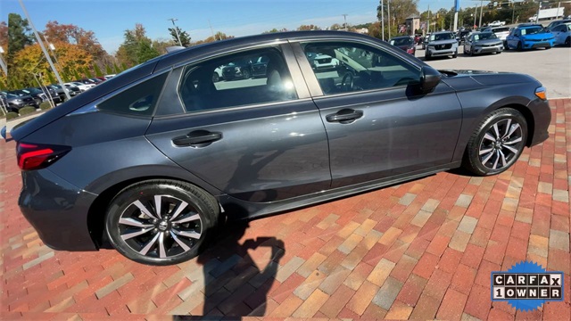 Recent Arrival! CARFAX One-Owner. Certified. 2024 Honda Civic EX-L EX-L Meteorite Gray Metallic 4D Hatchback 1.5L I4 DOHC 16V CVT FWD This vehicle comes well equipped with 17" Alloy Wheels, 4-Wheel Disc Brakes, 8 Speakers, ABS brakes, Adaptive Cruise Control: Adaptive Cruise Control (ACC) with Low-Speed Follow, Air Conditioning, Alloy wheels, AM/FM radio, Apple CarPlay/Android Auto, Auto High-beam Headlights, Automatic temperature control, Blind Spot Information (BSI) System warning, Brake assist, Bumpers: body-color, Delay-off headlights, Driver door bin, Driver vanity mirror, Dual front impact airbags, Dual front side impact airbags, Electronic Stability Control, Emergency communication system: HondaLink, Exterior Parking Camera Rear, Four wheel independent suspension, Front anti-roll bar, Front Bucket Seats, Front Center Armrest, Front dual zone A/C, Front reading lights, Fully automatic headlights, Heated door mirrors, Heated Front Bucket Seats, Heated front seats, Illuminated entry, Knee airbag, Lane departure: Lane Keeping Assist System (LKAS) active, Leather Shift Knob, Leather steering wheel, Leather-Trimmed Seating Surfaces, Low tire pressure warning, Occupant sensing airbag, Outside temperature display, Overhead airbag, Panic alarm, Passenger door bin, Passenger vanity mirror, Power door mirrors, Power driver seat, Power moonroof, Power steering, Power windows, Radio data system, Radio: 180-Watt Audio System, Rear anti-roll bar, Rear seat center armrest, Rear side impact airbag, Rear window defroster, Rear window wiper, Remote keyless entry, Security system, Speed control, Speed-sensing steering, Split folding rear seat, Steering wheel mounted audio controls, Tachometer, Telescoping steering wheel, Tilt steering wheel, Traction control, Trip computer, Variably intermittent wipers, and Voltmeter.