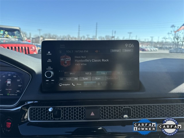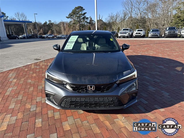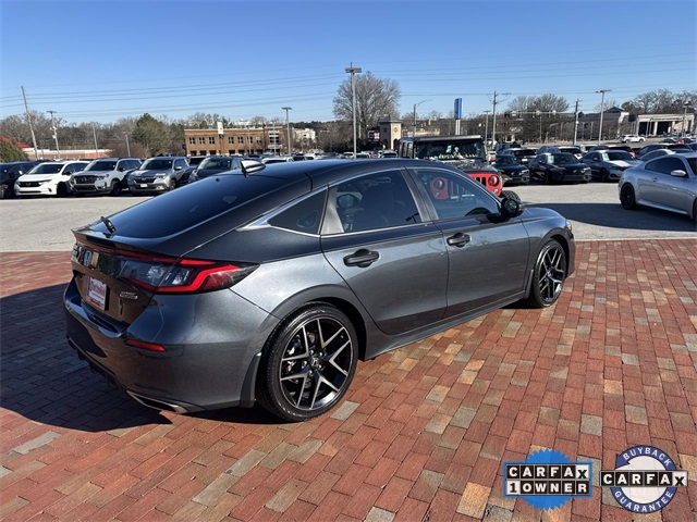 CARFAX One-Owner. Certified. 2024 Honda Civic Sport Touring Sport Touring Meteorite Gray Metallic 4D Hatchback 1.5L I4 DOHC 16V CVT FWD This vehicle comes well equipped with 12 Speakers, 18" Alloy Wheels, 4-Wheel Disc Brakes, ABS brakes, Adaptive Cruise Control: Adaptive Cruise Control (ACC) with Low-Speed Follow, Air Conditioning, Alloy wheels, AM/FM radio: SiriusXM, Apple CarPlay/Android Auto, Auto High-beam Headlights, Auto-dimming Rear-View mirror, Automatic temperature control, Blind Spot Information (BSI) System warning, Brake assist, Bumpers: body-color, Compass, Delay-off headlights, Driver door bin, Driver vanity mirror, Dual front impact airbags, Dual front side impact airbags, Electronic Stability Control, Emergency communication system: HondaLink, Exterior Parking Camera Rear, Four wheel independent suspension, Front anti-roll bar, Front Bucket Seats, Front Center Armrest, Front dual zone A/C, Front fog lights, Front reading lights, Fully automatic headlights, Garage door transmitter: HomeLink, Heated door mirrors, Heated Front Bucket Seats, Heated front seats, Illuminated entry, Knee airbag, Lane departure: Lane Keeping Assist System (LKAS) active, Leather Shift Knob, Leather steering wheel, Leather-Trimmed Seating Surfaces, Low tire pressure warning, Navigation system: Honda Satellite-Linked Navigation System, Occupant sensing airbag, Outside temperature display, Overhead airbag, Overhead console, Panic alarm, Passenger door bin, Passenger vanity mirror, Power door mirrors, Power driver seat, Power moonroof, Power passenger seat, Power steering, Power windows, Radio data system, Radio: BOSE Premium Audio System, Rain sensing wipers, Rear anti-roll bar, Rear seat center armrest, Rear side impact airbag, Rear window defroster, Rear window wiper, Remote keyless entry, Security system, Speed control, Speed-sensing steering, Split folding rear seat, Steering wheel mounted audio controls, Tachometer, Telescoping steering wheel, Tilt steering wheel, Traction control, Trip computer, Turn signal indicator mirrors, Variably intermittent wipers, and Voltmeter.