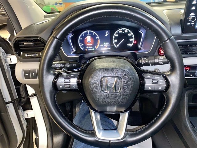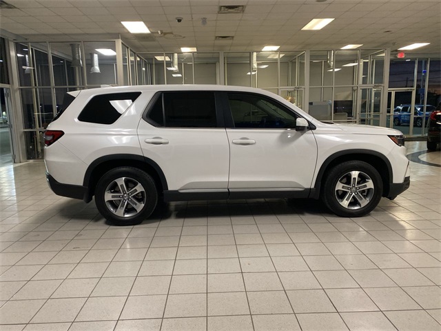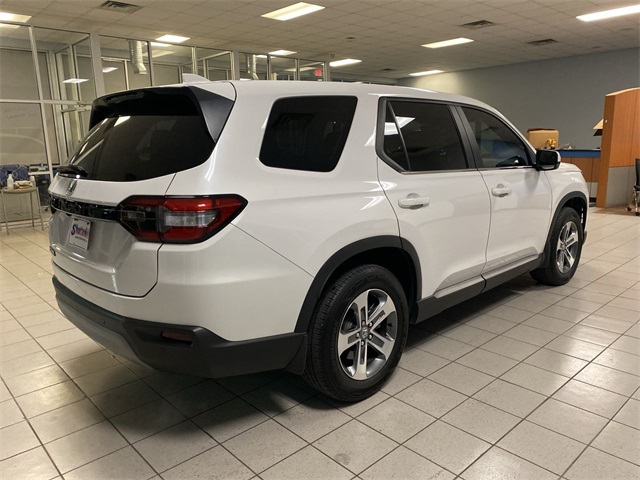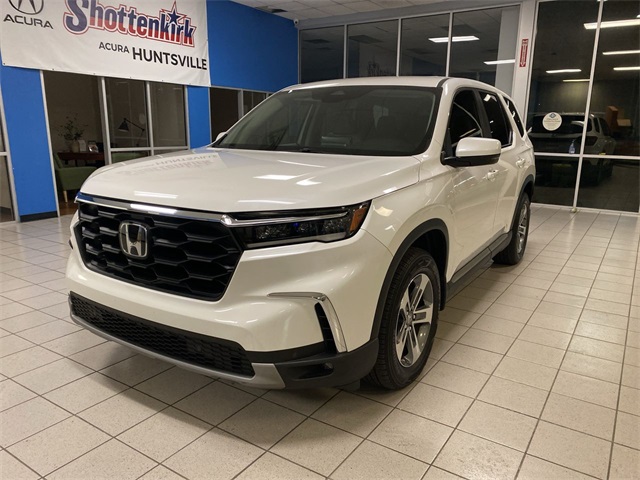 Platinum White Pearl 2024 Honda Pilot EX-L 8 Passenger FWD 10-Speed Automatic 3.5L V6 DOHC 24V 3rd row seats: split-bench, 4-Wheel Disc Brakes, 9 Speakers, ABS brakes, Adaptive Cruise Control: Adaptive Cruise Control (ACC) with Low-Speed Follow, Air Conditioning, Alloy wheels, AM/FM radio: SiriusXM, Apple CarPlay/Android Auto, Auto High-beam Headlights, Auto-dimming Rear-View mirror, Automatic temperature control, Axle Ratio: 4.167, Blind Spot Information (BSI) System warning, Brake assist, Bumpers: body-color, Delay-off headlights, Driver door bin, Driver vanity mirror, Dual front impact airbags, Dual front side impact airbags, Electronic Stability Control, Emergency communication system: HondaLink Assist, Exterior Parking Camera Rear, Four wheel independent suspension, Front anti-roll bar, Front Bucket Seats, Front Center Armrest, Front dual zone A/C, Front fog lights, Front reading lights, Fully automatic headlights, Garage door transmitter: HomeLink, Heated door mirrors, Heated Front Bucket Seats, Heated front seats, Illuminated entry, Knee airbag, Lane departure: Lane Keeping Assist System (LKAS) active, Leather Seat Trim, Low tire pressure warning, Memory seat, Occupant sensing airbag, Outside temperature display, Overhead airbag, Overhead console, Panic alarm, Passenger door bin, Passenger vanity mirror, Power door mirrors, Power driver seat, Power Liftgate, Power passenger seat, Power steering, Power windows, Radio data system, Radio: 245-Watt Audio System, Rear air conditioning, Rear anti-roll bar, Rear reading lights, Rear seat center armrest, Rear window defroster, Rear window wiper, Reclining 3rd row seat, Remote keyless entry, Security system, Speed control, Speed-sensing steering, Speed-Sensitive Wipers, Split folding rear seat, Spoiler, Steering wheel mounted audio controls, Tachometer, Telescoping steering wheel, Tilt steering wheel, Traction control, Trip computer, Turn signal indicator mirrors, Variably intermittent wipers, Wheels: 18" Pewter Gray Machined Face.