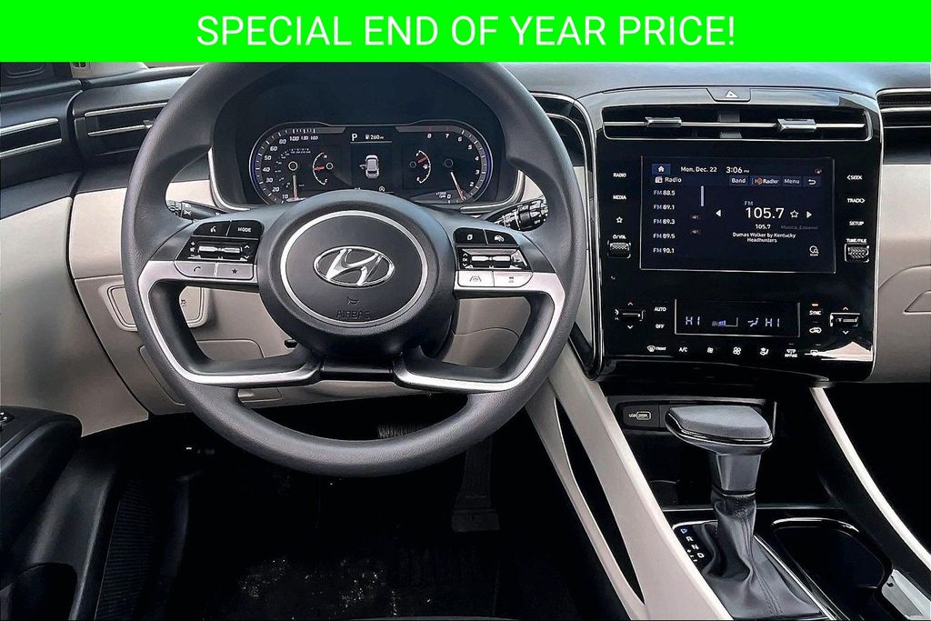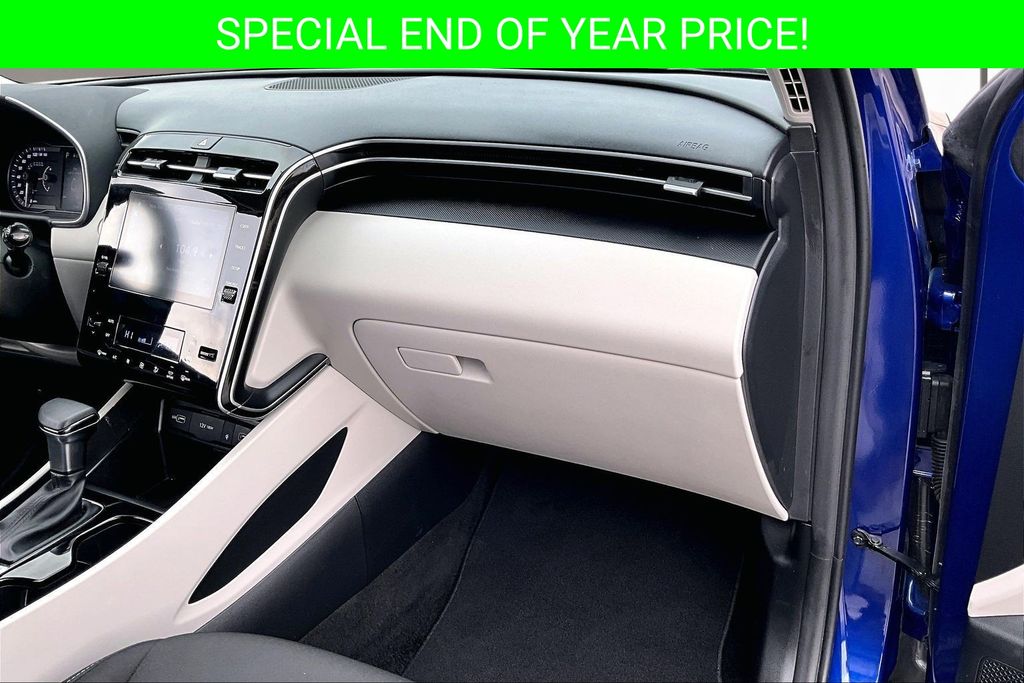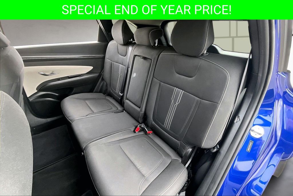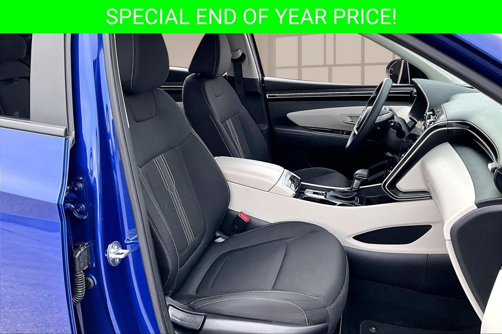 Apple CarPlay, Android Auto, Back Up Camera, Heated Seats, Power Drivers Seat, Stain Resistant Cloth Seats, Tucson SEL, 8-Speed Automatic with SHIFTRONIC, AWD, Intense Blue, Gray Cloth, AM/FM radio: SiriusXM, Apple CarPlay & Android Auto, Auto High-beam Headlights, Automatic temperature control, Electronic Stability Control, Emergency communication system: Blue Link Connected Car Service (3-year complimentary subscription), Exterior Parking Camera Rear, Four wheel independent suspension, Front Bucket Seats, Front dual zone A/C, Heated door mirrors, Heated Front Bucket Seats, Option Group 01, Power door mirrors, Power driver seat, Power Liftgate, Radio: AM/FM/HD Audio System, Rear window wiper, Remote keyless entry, Roof rack: rails only, Spoiler, Stain & Odor Resistant Cloth Seat Trim, Telescoping steering wheel, Tilt steering wheel, Wheels: 19" x 7.5J" Machine-Face Finish Alloy.