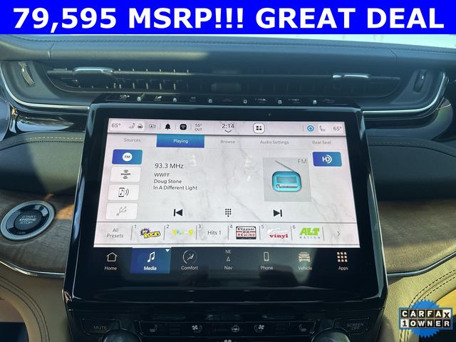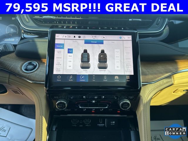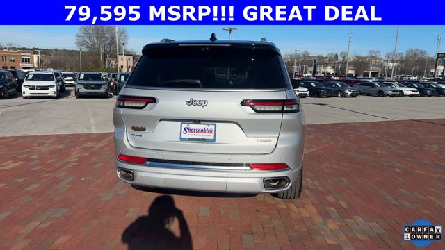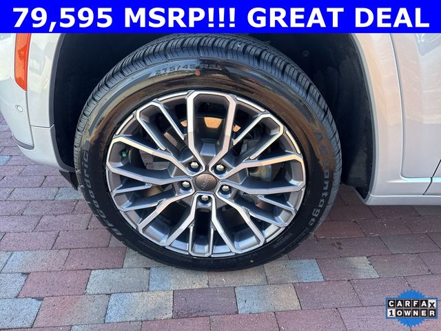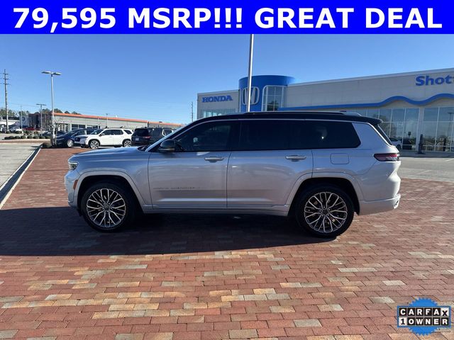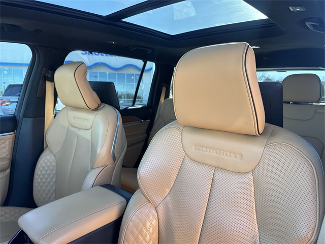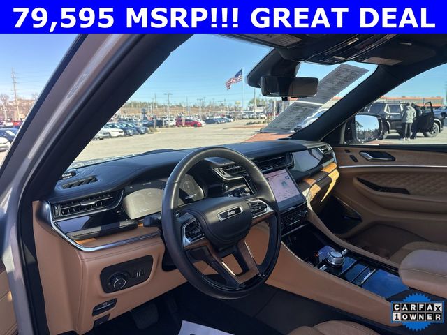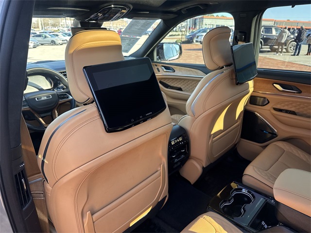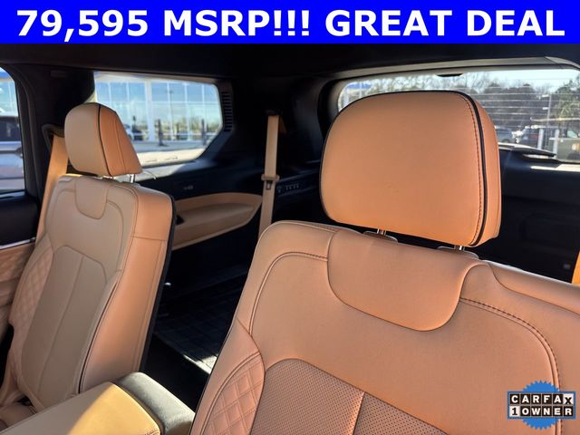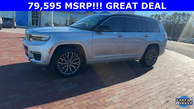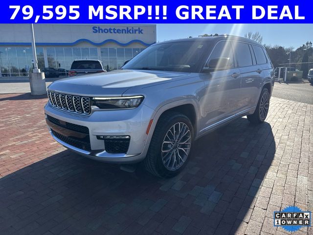 CARFAX One-Owner. 2024 Jeep Grand Cherokee L Summit Summit Silver Zynith 4D Sport Utility 3.6L V6 24V VVT 8-Speed Automatic 4WD This vehicle comes well equipped with Advanced Protech Group IV (Heads-Up Display, Interior Rear Facing Camera, Night Vision/Pedestrian-Animal Detection, and Rearview Autodim Digital Display Mirror), Luxury Tech Group V (2nd Row Manual Window Shades and Wireless Charging Pad), Quick Order Package 23U Summit Reserve (19 Speakers High Performance Audio, 950 Watt Amplifier, Active Noise Control System, Deluxe Headliner, Front Passenger Interactive Display, Palermo Leather Door Trim, Palermo Leather Seats, Summit Reserve, Summit Reserve Badge, Ventilated Rear Seats, and Wheels: 21" x 9.0" Machined Face/Painted Aluminum), Rear Seat Video Group I (Amazon Fire TV Built-In, Seatback Video Screens, and Video USB Port), Two Tone Paint Group, 10 Speakers, 3.45 Rear Axle Ratio, 3rd row seats: split-bench, 4-Wheel Disc Brakes, ABS brakes, Adaptive suspension, Air Conditioning, Alloy wheels, AM/FM radio: SiriusXM with 360L, Anti-whiplash front head restraints, Audio memory, Auto High-beam Headlights, Auto-dimming door mirrors, Auto-dimming Rear-View mirror, Auto-leveling suspension, Automatic temperature control, Brake assist, Bumpers: body-color, Compass, Delay-off headlights, Driver door bin, Driver vanity mirror, Dual front impact airbags, Dual front side impact airbags, Electronic Stability Control, Emergency communication system, Four wheel independent suspension, Front anti-roll bar, Front Bucket Seats, Front Center Armrest w/Storage, Front dual zone A/C, Front fog lights, Front reading lights, Fully automatic headlights, Garage door transmitter, Genuine wood dashboard insert, Genuine wood door panel insert, Heated door mirrors, Heated front seats, Heated rear seats, Heated steering wheel, Illuminated entry, Knee airbag, Leather steering wheel, Low tire pressure warning, Memory seat, Nappa Leather Seats, Navigation System, Normal Duty Suspension, Occupant sensing airbag, Outside temperature display, Overhead airbag, Overhead console, Panic alarm, Passenger door bin, Passenger vanity mirror, Power door mirrors, Power driver seat, Power Fold Seatbacks, Power Liftgate, Power moonroof, Power passenger seat, Power steering, Power windows, Radio data system, Radio: Uconnect 5 Nav w/10.1" Display, Rain sensing wipers, Rear air conditioning, Rear anti-roll bar, Rear dual zone A/C, Rear reading lights, Rear seat center armrest, Rear window defroster, Rear window wiper, Reclining 3rd row seat, Remote keyless entry, Security system, Speed control, Speed-Sensitive Wipers, Split folding rear seat, Spoiler, Steering wheel memory, Steering wheel mounted audio controls, Tachometer, Telescoping steering wheel, Tilt steering wheel, Traction control, Trip computer, Turn signal indicator mirrors, Variably intermittent wipers, Ventilated front seats, Voltmeter, and Wheels: 20" x 8.5" Fully Painted Aluminum Silver.