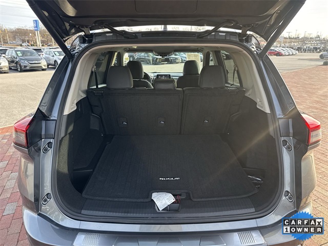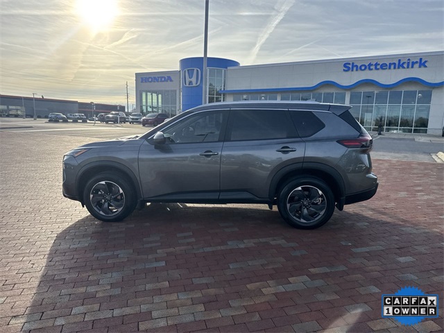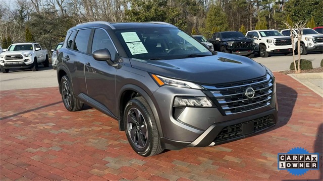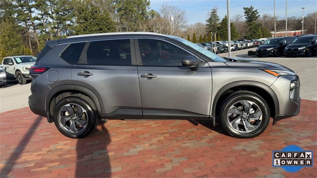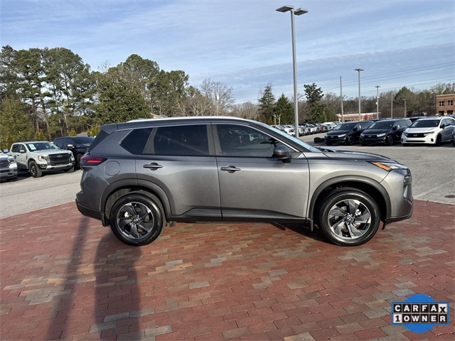 CARFAX One-Owner. 2024 Nissan Rogue SV SV Gun Metallic 4D Sport Utility 1.5L DOHC CVT with Xtronic FWD This vehicle comes well equipped with SV Premium Package (Heated Front Seats, Heated Leather-Wrapped Steering Wheel, Leatherette Door Trim Inserts w/Stitch, Panoramic Moonroof, Prima-Tex Leatherette Seat Trim w/Perforation, Rear Door Sunshades, Rear Personal Lights, and Silver Painted Roof Rails), 4-Wheel Disc Brakes, 5.676 Axle Ratio, 6 Speakers, ABS brakes, Air Conditioning, Alloy wheels, AM/FM radio: SiriusXM, Auto High-beam Headlights, Automatic temperature control, Black Splash Guards (Set of 4), Brake assist, Bumpers: body-color, Chrome Rear Bumper Protector, Cloth Seat Trim w/Patterned Inserts, Delay-off headlights, Driver door bin, Driver vanity mirror, Dual front impact airbags, Dual front side impact airbags, Electronic Stability Control, Emergency communication system: NissanConnect Services, First Aid Kit, Floor Mats w/1-Piece Cargo Area Protector, Four wheel independent suspension, Front anti-roll bar, Front Bucket Seats, Front Center Armrest, Front dual zone A/C, Front reading lights, Fully automatic headlights, Heated door mirrors, Illuminated entry, Knee airbag, Low tire pressure warning, NissanConnect featuring Apple CarPlay and Android Auto, Occupant sensing airbag, Outside temperature display, Overhead airbag, Overhead console, Panic alarm, Passenger door bin, Passenger vanity mirror, Power door mirrors, Power driver seat, Power Liftgate, Power steering, Power windows, Radio data system, Radio: AM/FM NissanConnect, Rear anti-roll bar, Rear Parking Sensors, Rear seat center armrest, Rear side impact airbag, Rear window defroster, Rear window wiper, Remote keyless entry, Speed control, Speed-Sensitive Wipers, Split folding rear seat, Spoiler, Steering wheel mounted audio controls, Tachometer, Telescoping steering wheel, Tilt steering wheel, Traction control, Trip computer, Variably intermittent wipers, and Wheels: 18" Dark Painted Machine Finished Alloy.