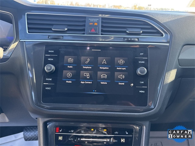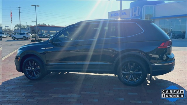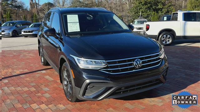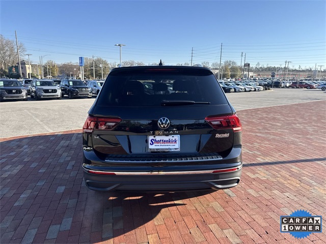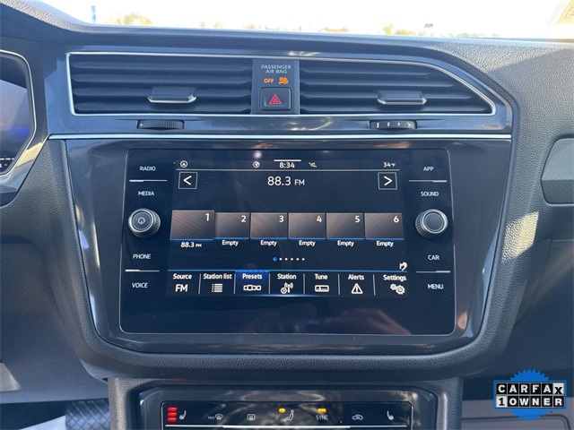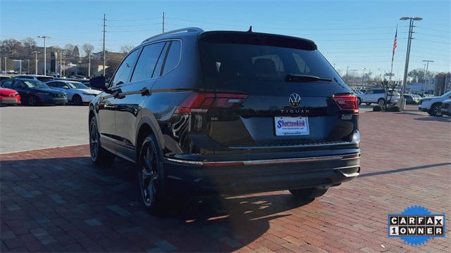 CARFAX One-Owner. 2024 Volkswagen Tiguan 2.0T SE 2.0T SE Deep Black 4D Sport Utility 2.0L TSI DOHC 8-Speed Automatic with Tiptronic FWD This vehicle comes well equipped with 3-Row Rubber Monster Mats Kit (Set of 5), 3.33 Axle Ratio, 3rd row seats: bench, 4-Wheel Disc Brakes, 4-Wheel Independent Suspension, 6 Speakers, ABS brakes, Air Conditioning, Alloy wheels, AM/FM radio: SiriusXM with 360L, Auto-dimming Rear-View mirror, Auto-Dimming Rearview Mirror w/HomeLink Connect, Automatic temperature control, Brake assist, Bumpers: body-color, Compass, Delay-off headlights, Driver door bin, Driver vanity mirror, Dual front impact airbags, Dual front side impact airbags, Electronic Stability Control, Emergency communication system: VW Car-Net Safe & Secure 5-year, Exterior Parking Camera Rear, Four wheel independent suspension, Front anti-roll bar, Front Bucket Seats, Front Center Armrest, Front dual zone A/C, Front reading lights, Fully automatic headlights, Heated door mirrors, Heated Front Seats, Heated front seats, Heavy Duty Trunk Liner w/VW CarGo Blocks, Illuminated entry, Leather Shift Knob, Low tire pressure warning, Occupant sensing airbag, Outside temperature display, Overhead airbag, Overhead console, Panic alarm, Passenger door bin, Passenger vanity mirror, Perforated V-Tex Leatherette Seating Surfaces, Power door mirrors, Power driver seat, Power Liftgate, Power steering, Power windows, Radio data system, Radio: MIB3 Composition Media AM/FM/HD, Rain sensing wipers, Rear anti-roll bar, Rear reading lights, Rear seat center armrest, Rear window defroster, Rear window wiper, Remote keyless entry, Security system, Speed control, Speed-sensing steering, Split folding rear seat, Spoiler, Steering wheel mounted audio controls, Tachometer, Telescoping steering wheel, Tilt steering wheel, Traction control, Trip computer, Turn signal indicator mirrors, Variably intermittent wipers, and Wheels: 18" Dark Graphite Painted 10-Spoke Alloy.