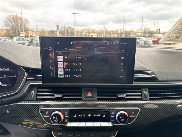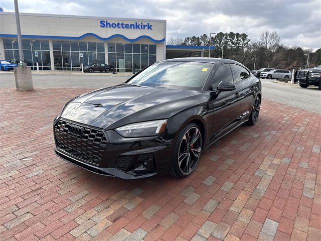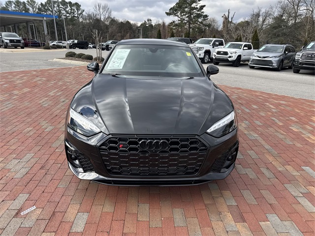 Recent Arrival! CARFAX One-Owner. 2025 Audi S5 Sportback Premium Plus quattro Premium Plus Black 4D Hatchback quattro 3.0L TFSI 8-Speed Automatic with Tiptronic quattro This vehicle comes well equipped with Black Optic Plus Package (Black Audi Rings and Badges, Black Exterior Mirror Housings and Exhaust Tips, Black Exterior Trim, Black Fender Badges, Black Rear Lip Spoiler, and Wheels: 20" 5-Twin-Spoke Polygon Design), Convenience Package (2 Rear USB Charge Ports, Alarm System with Motion Sensor, Audi Advanced Key, Audi Side Assist with Pre Sense Rear, Auto-Dimming Exterior Mirrors with Memory, Memory For Driver Seat, and SiriusXM with 360L), LED Interior Lighting Plus Package, Premium Plus Package (Audi Connect NAV and PLUS, Audi MMI Navigation Plus, Audi Virtual Cockpit Plus, Bang & Olufsen Sound System with 3D Sound, Leatherette Covered Center Console and Door Armrests, Power Folding Exterior Mirrors, Top View Camera System, Traffic Sign Recognition, and Wireless Phone Charging Pad), and S Sport Package (Red Brake Calipers, Sport Adaptive Damping Suspension, and Sport Rear Differential) Black Optic Plus Package (Black Audi Rings and Badges, Black Exterior Mirror Housings and Exhaust Tips, Black Exterior Trim, Black Fender Badges, Black Rear Lip Spoiler, and Wheels: 20" 5-Twin-Spoke Polygon Design), Convenience Package (2 Rear USB Charge Ports, Alarm System with Motion Sensor, Audi Advanced Key, Audi Side Assist with Pre Sense Rear, Auto-Dimming Exterior Mirrors with Memory, Memory For Driver Seat, and SiriusXM with 360L), LED Interior Lighting Plus Package, Premium Plus Package (Audi Connect NAV and PLUS, Audi MMI Navigation Plus, Audi Virtual Cockpit Plus, Bang & Olufsen Sound System with 3D Sound, Leatherette Covered Center Console and Door Armrests, Power Folding Exterior Mirrors, Top View Camera System, Traffic Sign Recognition, and Wireless Phone Charging Pad), S Sport Package (Red Brake Calipers, Sport Adaptive Damping Suspension, and Sport Rear Differential), 10 Speakers, 4-Wheel Disc Brakes, ABS brakes, Air Conditioning, Alloy wheels, AM/FM radio, Auto High-beam Headlights, Auto-dimming Rear-View mirror, Automatic temperature control, Brake assist, Bumpers: body-color, Compass, Delay-off headlights, Driver door bin, Driver vanity mirror, Dual front impact airbags, Dual front side impact airbags, Electronic Stability Control, Emergency communication system: Audi connect CARE, Exterior Parking Camera Rear, Four wheel independent suspension, Front anti-roll bar, Front Bucket Seats, Front Center Armrest, Front dual zone A/C, Front fog lights, Front reading lights, Garage door transmitter: HomeLink, Heated door mirrors, Heated Front S Sport Seats, Heated front seats, Heated steering wheel, Illuminated entry, Knee airbag, Leather Shift Knob, Leather steering wheel, Leather/Dinamica Seating Surfaces, Low tire pressure warning, Occupant sensing airbag, Outside temperature display, Overhead airbag, Overhead console, Panic alarm, Passenger door bin, Passenger vanity mirror, Power door mirrors, Power driver seat, Power Liftgate, Power moonroof, Power passenger seat, Power steering, Power windows, Radio data system, Radio: Audi Sound System, Rain sensing wipers, Rear air conditioning, Rear anti-roll bar, Rear reading lights, Rear seat center armrest, Rear window defroster, Remote keyless entry, Speed control, Speed-sensing steering, Speed-Sensitive Wipers, Split folding rear seat, Spoiler, Steering wheel mounted audio controls, Tachometer, Telescoping steering wheel, Tilt steering wheel, Traction control, Trip computer, Turn signal indicator mirrors, Variably intermittent wipers, and Wheels: 19" 5-Double-Arm Design Bi-Color Finish.