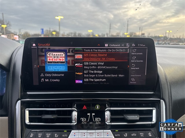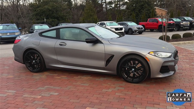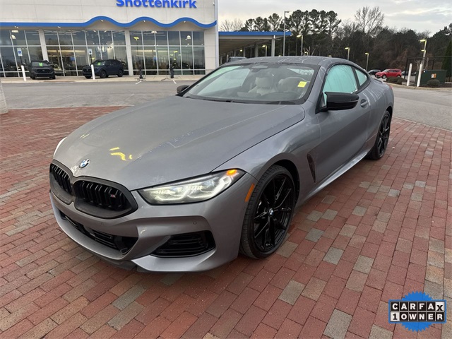 CARFAX One-Owner. 2025 BMW 8 Series M850i xDrive M850i xDrive Skyscraper Grey Metallic 2D Coupe 4.4L V8 32V TwinPower Turbo 8-Speed Automatic Sport AWD This vehicle comes well equipped with Driving Assistance Professional Package (Active Driving Assistant Pro and Extended Traffic Jam Assistant) and Bowers & Wilkins Diamond Surround Sound System Driving Assistance Professional Package (Active Driving Assistant Pro and Extended Traffic Jam Assistant), Connected Package Pro, Driving Assistance Package (Active Blind Spot Detection, Active Driving Assistant, Active Park Distance Control, Parking Assistant Plus, Rear-View Camera, and Surround View with 3D View), M Performance Package, M Sport Professional Package (Extended Shadowline Trim, M Shadowline Lights, and M Sport Brakes with Black Calipers), Bowers & Wilkins Diamond Surround Sound System, 16 Speakers, 4-Wheel Disc Brakes, ABS brakes, Adaptive suspension, Air Conditioning, Alloy wheels, AM/FM radio: SiriusXM, Anthracite Alcantara Headliner, Apple CarPlay and Android Auto Compatibility, Auto High-beam Headlights, Auto tilt-away steering wheel, Auto-dimming door mirrors, Auto-dimming Rear-View mirror, Automatic temperature control, BMW Assist ECall, BMW TeleServices, Brake assist, Bumpers: body-color, Carbon Fiber Trim, ConnectedDrive Services, Delay-off headlights, Driver door bin, Driver vanity mirror, Dual front impact airbags, Dual front side impact airbags, Electronic Stability Control, Emergency communication system: BMW Assist eCall, Enhanced USB and Bluetooth, Exterior Parking Camera Rear, Four wheel independent suspension, Front anti-roll bar, Front Bucket Seats, Front Center Armrest, Front dual zone A/C, Front reading lights, Front Ventilated Seats, Fully automatic headlights, Garage door transmitter, Glass Controls, Harman/Kardon Surround Sound System, harman/kardon® Speakers, Heads-Up Display, Heated door mirrors, Heated front seats, Heated Front Seats, Armrests and Steering Wheel, Heated steering wheel, Illuminated entry, Leather Shift Knob, Leather steering wheel, Live Cockpit Pro with Navigation, Low tire pressure warning, Memory seat, Multi-Functional Seats, Navigation System, Occupant sensing airbag, Outside temperature display, Overhead airbag, Panic alarm, Passenger door bin, Passenger vanity mirror, Power door mirrors, Power driver seat, Power passenger seat, Power steering, Power windows, Radio data system, Radio: AM/FM Audio System, Rain sensing wipers, Rear anti-roll bar, Rear window defroster, Remote keyless entry, Security system, SiriusXM Satellite Radio with 1 Year Subscription, Speed control, Speed-sensing steering, Speed-Sensitive Wipers, Split folding rear seat, Spoiler, Sport steering wheel, Steering wheel memory, Steering wheel mounted audio controls, Tachometer, Telescoping steering wheel, Tilt steering wheel, Traction control, Trip computer, Turn signal indicator mirrors, Variably intermittent wipers, Ventilated front seats, Wheels: 20" x 8" Front and 20" x 9" Rear M V-Spoke, WiFi Hotspot, and Wireless Charging.