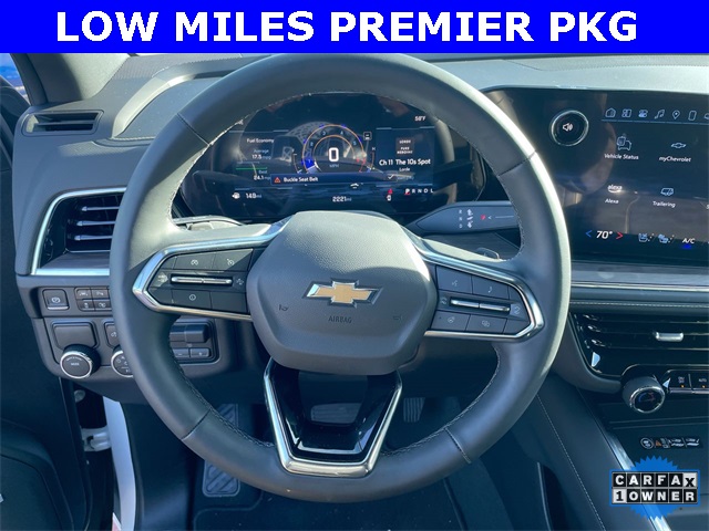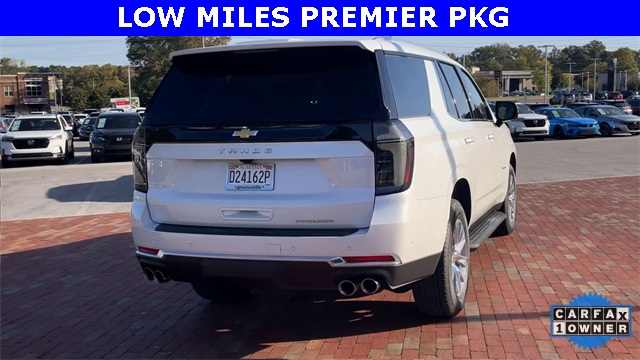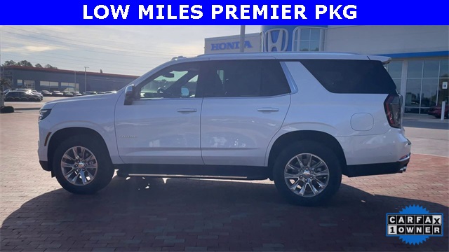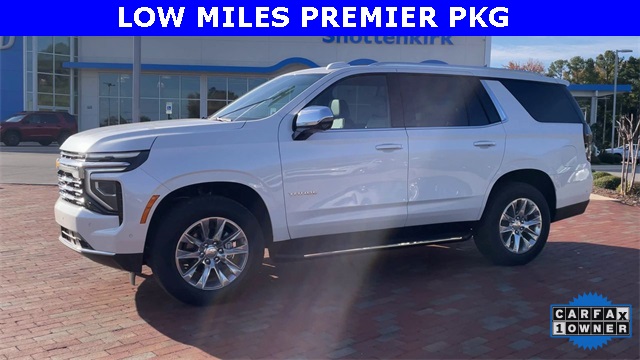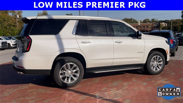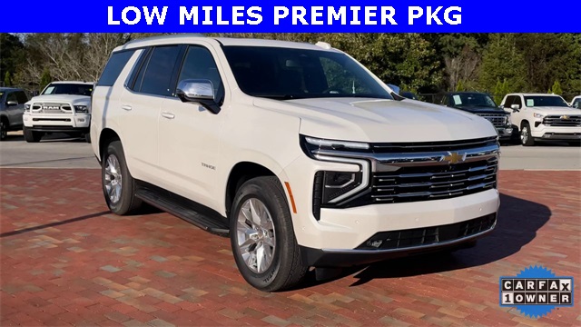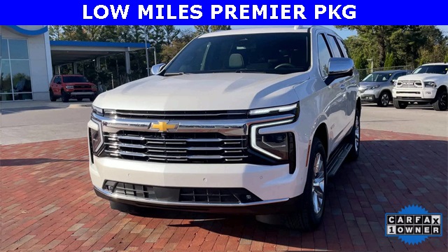 CARFAX One-Owner. 2025 Chevrolet Tahoe Premier Premier Iridescent Pearl Tricoat 4D Sport Utility EcoTec3 5.3L V8 10-Speed Automatic with Overdrive RWD This vehicle comes well equipped with Advanced Trailering Package (Blind Zone Steering Assist w/Trailering, Hitch View w/Pan/Zoom Image Adjustment, and Smart Trailer Integration Indicator), Max Trailering Package (Integrated Trailer Brake Controller), Preferred Equipment Group 1LZ (1st & 2nd Row Color-Keyed Carpeted Floor Mats, 3-Spoke Wrapped Steering Wheel, 3rd Row 60/40 Power-Folding Split-Bench Seat, Auto-Dimming Inside Rear-View Mirror, Bose 10-Speaker Centerpoint Surround Audio Sys Ft, Bright Front & Rear Door Sill Plates, Chrome Door Handles w/Body-Color Strip, Color-Keyed Carpeting Floor Covering, Dual Exhaust System, Floor Console, Front LED Fog Lamps, Front Pedestrian & Bicyclist Braking, Frontal Driver & Outboard Passenger Airbags, Heated 2nd Row Outboard Seats, Heated Steering Wheel, LED Headlamps w/LED Daytime Running Lamps, LED Tail Lamps, Memory Settings, Outside Heated Power-Adjustable Mirrors, Power Release 2nd Row Bucket Seats, Power Tilt & Telescopic Steering Column, Rear Power Liftgate, Remote Start, SiriusXM w/360L Trial Subscription, Universal Home Remote, and Wireless Phone Charging), Sun & Tow Package (Dual-Pane Power Panoramic Sunroof), 10 Speakers, 20" x 9" Polished Aluminum Wheels, 3.23 Rear Axle Ratio, 3rd row seats: split-bench, 4-Way Power Driver Lumbar Seat Adjuster, 4-Way Power Front Passenger Lumbar Seat Adjuster, 4-Wheel Disc Brakes, 8-Way Power Driver Seat Adjuster, 8-Way Power Front Passenger Seat Adjuster, ABS brakes, Adaptive suspension, Air Conditioning, Alloy wheels, AM/FM radio: SiriusXM with 360L, Apple CarPlay/Android Auto, Auto High-beam Headlights, Auto-dimming door mirrors, Auto-dimming Rear-View mirror, Auto-leveling suspension, Automatic temperature control, Brake assist, Bumpers: body-color, Compass, Delay-off headlights, Driver & Front Passenger Heated & Ventilated Seats, Driver door bin, Driver vanity mirror, Dual front impact airbags, Dual front side impact airbags, Electronic Stability Control, Emergency communication system: OnStar and Chevrolet connected services capable, Exterior Parking Camera Rear, Extra Capacity Cooling System, Four wheel independent suspension, Front anti-roll bar, Front Bucket Seats, Front Center Armrest, Front dual zone A/C, Front fog lights, Front reading lights, Fully automatic headlights, Garage door transmitter, Heated door mirrors, Heated Driver & Front Passenger Seats, Heated front seats, Heated rear seats, Heated steering wheel, Illuminated entry, Low tire pressure warning, Magnetic Ride Control Suspension, Memory seat, Navigation system: Google built-in compatibility (select service plan required, terms and limitations apply), Occupant sensing airbag, Outside temperature display, Overhead airbag, Overhead console, Panic alarm, Passenger door bin, Passenger vanity mirror, Perforated Leather Seat Trim, Power door mirrors, Power driver seat, Power Liftgate, Power passenger seat, Power steering, Power windows, Premium audio system: Chevrolet Infotainment 3 Premium, Radio data system, Radio: 17.7" Diagonal Advanced Color LCD Display, Rain sensing wipers, Rear air conditioning, Rear anti-roll bar, Rear reading lights, Rear window defroster, Rear window wiper, Remote keyless entry, Security system, Speed control, Speed-sensing steering, Split folding rear seat, Spoiler, Steering wheel memory, Steering wheel mounted audio controls, Tachometer, Telescoping steering wheel, Tilt steering wheel, Traction control, Trip computer, Turn signal indicator mirrors, Variably intermittent wipers, Ventilated front seats, and Voltmeter.