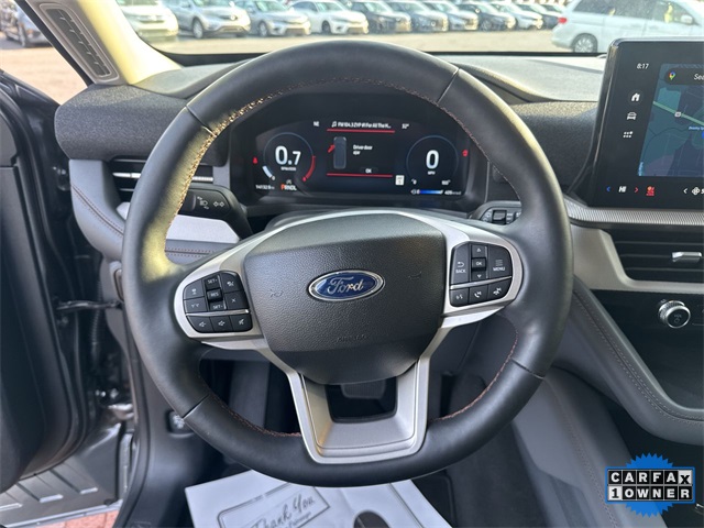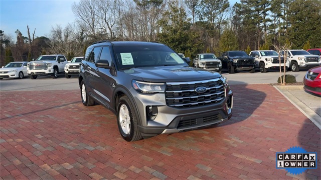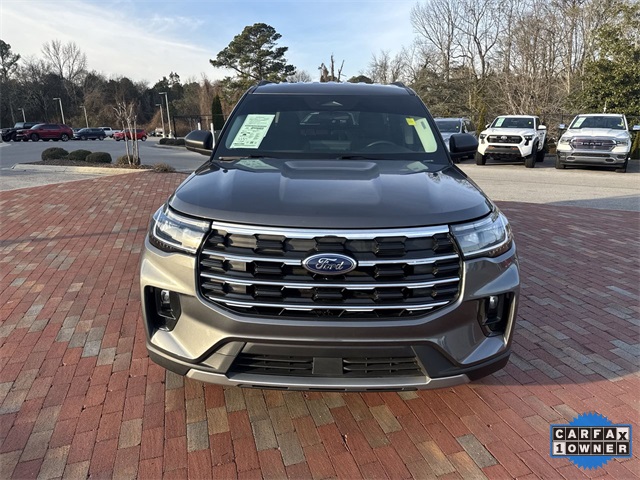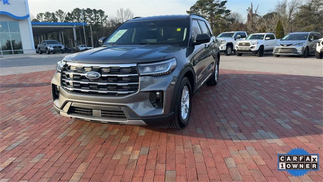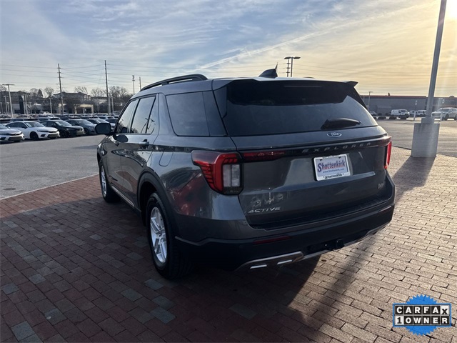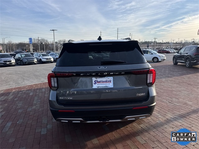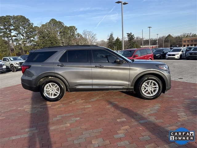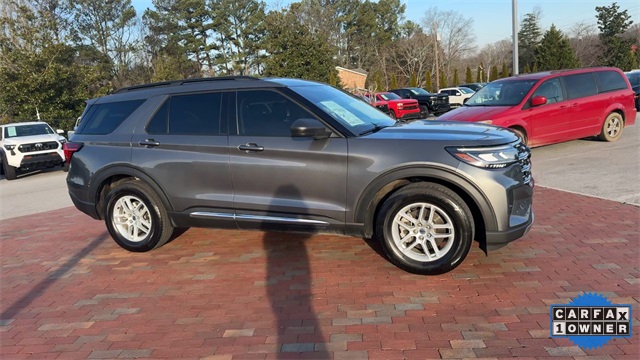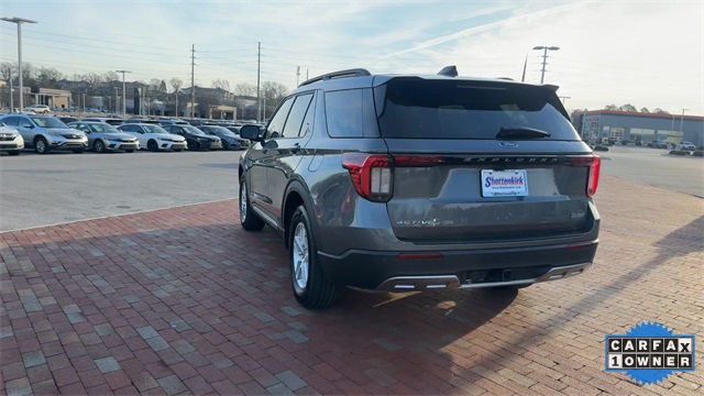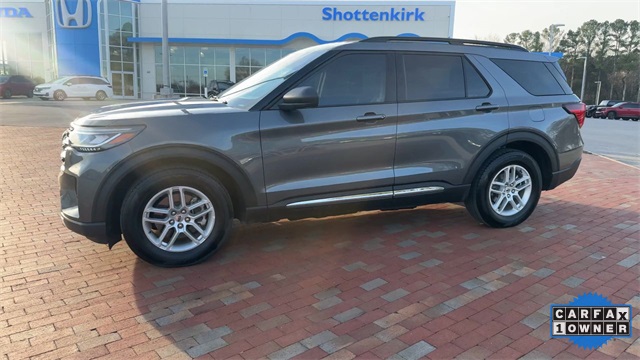 CARFAX One-Owner. 2025 Ford Explorer Active Active Gray Metallic 4D Sport Utility 2.3L EcoBoost I-4 10-Speed Automatic RWD This vehicle comes well equipped with Active Comfort Package (Front Fascia, Heated ActiveX Seating Material Captain's Chairs, Heated Steering Wheel, Remote Start System, Second Row HVAC Controls, and Universal Garage Door Opener (UGDO)), Equipment Group 200A Standard Package, 3.58 Non-Limited Slip Rear Axle, 3rd row seats: bench, 4-Wheel Disc Brakes, 6 Speakers, ABS brakes, Air Conditioning, Alloy wheels, AM/FM radio: SiriusXM with 360L, AM/FM Stereo, Apple CarPlay/Android Auto, Auto High-beam Headlights, Automatic temperature control, Brake assist, Bumpers: body-color, Compass, Delay-off headlights, Driver door bin, Driver vanity mirror, Dual front impact airbags, Dual front side impact airbags, Electronic Stability Control, Emergency communication system: 911 Assist, Exterior Parking Camera Rear, Four wheel independent suspension, Front anti-roll bar, Front Bucket Seats, Front Center Armrest, Front dual zone A/C, Front reading lights, Fully automatic headlights, Heated door mirrors, Heated front seats, Illuminated entry, Internet access capable: FordPass Connect 5G, Knee airbag, Leather steering wheel, Low tire pressure warning, Navigation System, Occupant sensing airbag, Outside temperature display, Overhead airbag, Overhead console, Panic alarm, Passenger door bin, Passenger vanity mirror, Power door mirrors, Power driver seat, Power Liftgate, Power passenger seat, Power steering, Power windows, Rear air conditioning, Rear anti-roll bar, Rear reading lights, Rear window defroster, Rear window wiper, Remote keyless entry, Security system, Speed control, Speed-sensing steering, Speed-Sensitive Wipers, Split folding rear seat, Spoiler, Steering wheel mounted audio controls, Tachometer, Telescoping steering wheel, Tilt steering wheel, Traction control, Trip computer, Unique Heated Cloth Captain's Chairs, Variably intermittent wipers, and Wheels: 18" Sparkle Silver-Painted Aluminum.