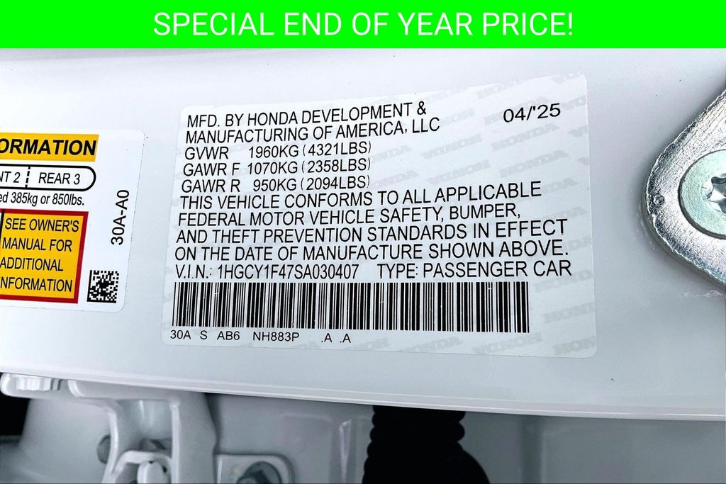 2025 Honda Accord Platinum White Pearl 1.5T I4 DOHC 16V Turbocharged VTEC CVT 4D Sedan SE