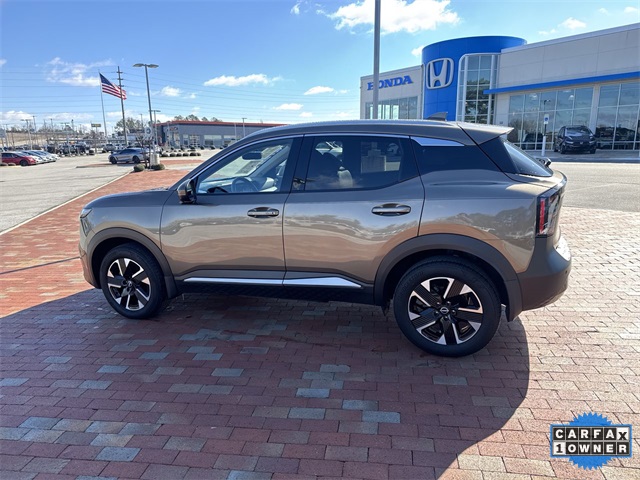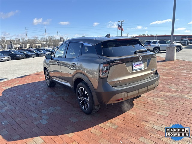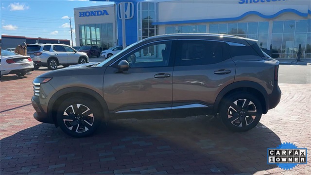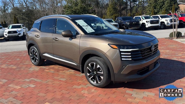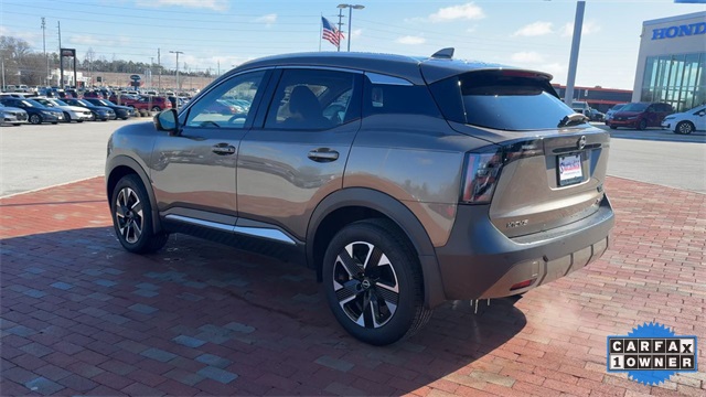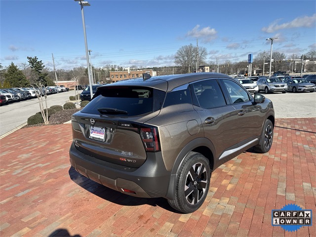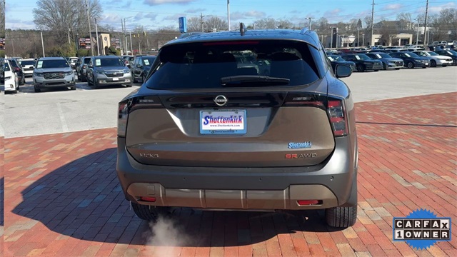 CARFAX One-Owner. 2025 Nissan Kicks SR SR Canyon Bronze Metallic 4D Sport Utility 2.0L DOHC CVT with Xtronic AWD This vehicle comes well equipped with Interior Electronics Package (Door Pocket Light, Frameless Auto-Dimming Mirror w/HomeLink, and Interior Ambient Lighting), 17" Alloy Wheels, 4-Wheel Disc Brakes, 6 Speakers, ABS brakes, Air Conditioning, Alloy wheels, AM/FM radio: Sirius, Auto High-beam Headlights, Automatic temperature control, Brake assist, Bumpers: body-color, Carpeted Floor Mats, Delay-off headlights, Driver door bin, Driver vanity mirror, Dual front impact airbags, Dual front side impact airbags, Electronic Stability Control, Four wheel independent suspension, Front anti-roll bar, Front Bucket Seats, Front Center Armrest, Front reading lights, Fully automatic headlights, Heated door mirrors, Illuminated entry, Knee airbag, Leather Shift Knob, Leather steering wheel, Low tire pressure warning, Occupant sensing airbag, Outside temperature display, Overhead airbag, Overhead console, Panic alarm, Passenger door bin, Passenger vanity mirror, Power door mirrors, Power steering, Power windows, Radio data system, Radio: AM/FM Audio System, Rear anti-roll bar, Rear reading lights, Rear seat center armrest, Rear side impact airbag, Rear window defroster, Rear window wiper, Remote keyless entry, Security system, Speed control, Speed-sensing steering, Splash Guards, Split folding rear seat, Spoiler, Sport Cloth/Leatherette Seat Trim, Sport steering wheel, Steering wheel mounted audio controls, Tachometer, Telescoping steering wheel, Tilt steering wheel, Traction control, Trip computer, Turn signal indicator mirrors, Variably intermittent wipers, and Wireless Apple CarPlay/Wireless Android Auto.